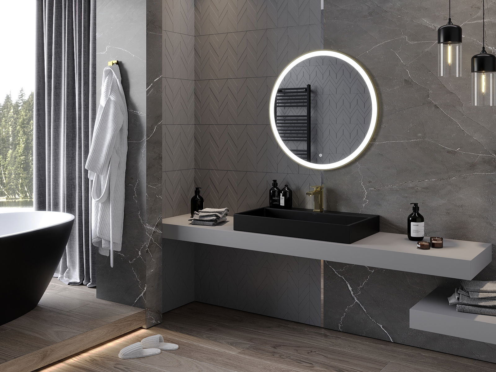 Lumina de fundal LED la oglindă este un element practic care facilitează îngrijirea zilnică, datorită posibilității unei iluminări faciale ideale. Lumina de fundal oferă băii un finisaj modern, subliniind decorul său elegant.