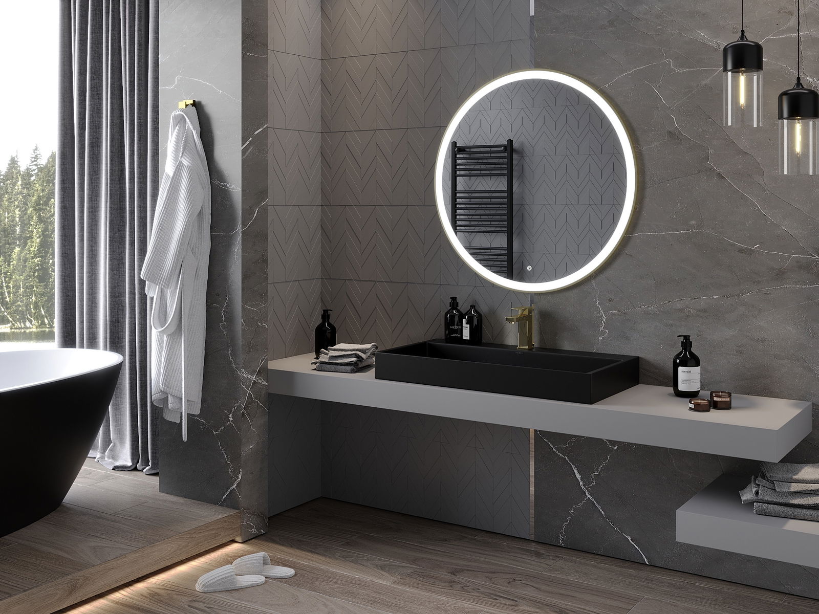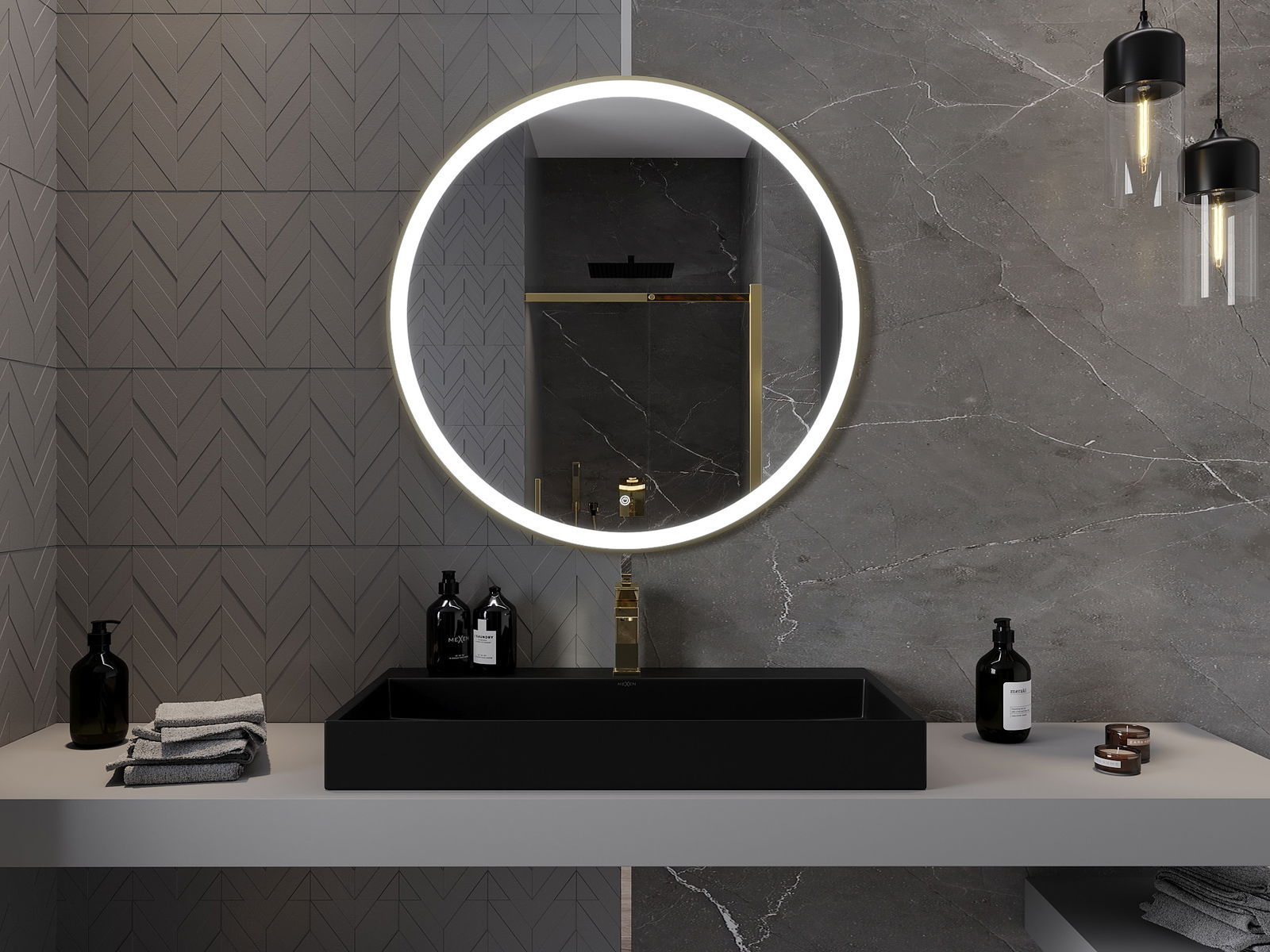 Lumina de fundal LED la oglindă este un element practic care facilitează îngrijirea zilnică, datorită posibilității unei iluminări faciale ideale. Lumina de fundal oferă băii un finisaj modern, subliniind decorul său elegant.