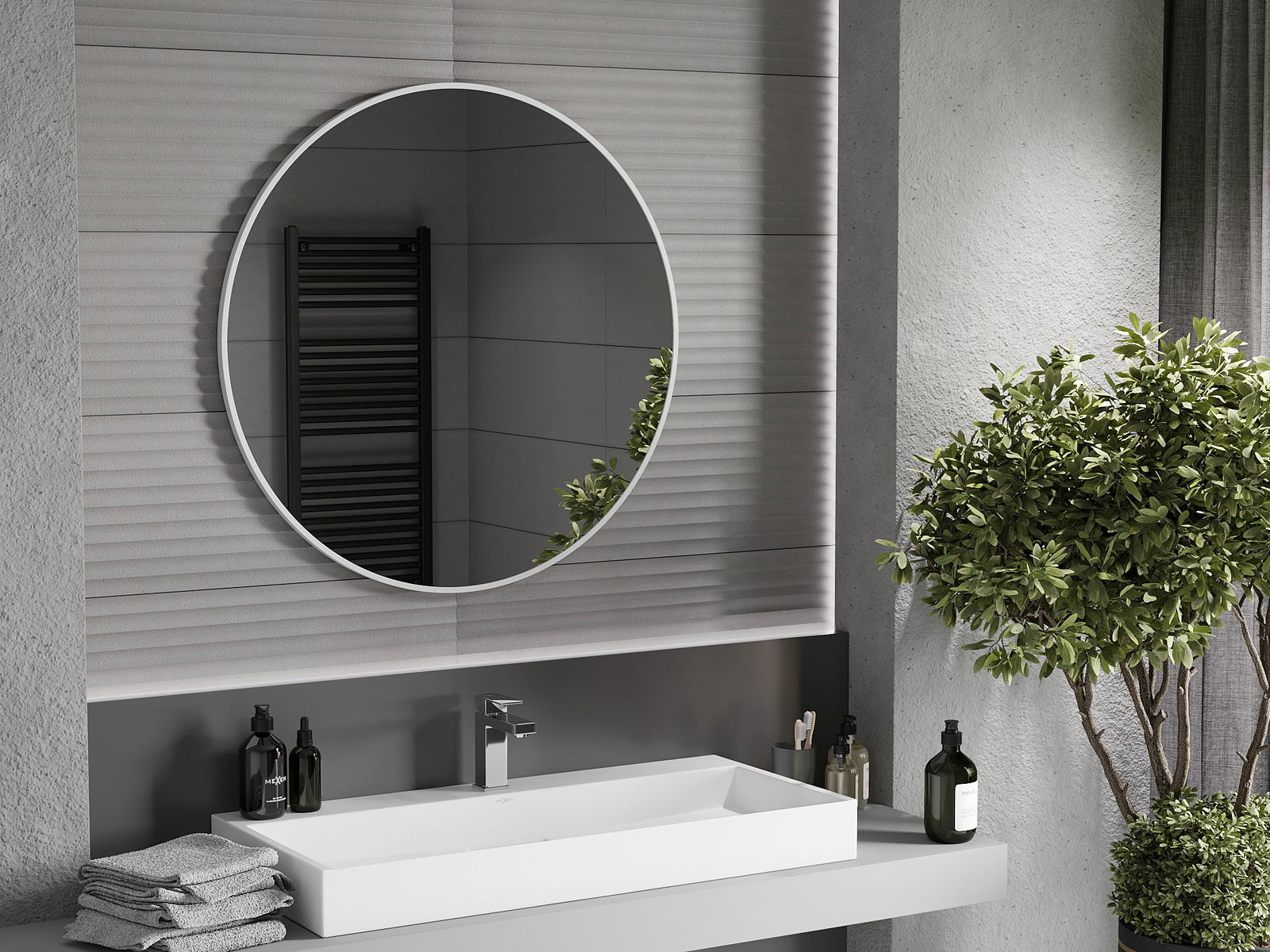 Mexen Loft oglindă de baie rotundă 90 cm, ramă albă - 9850-090-090-000-20