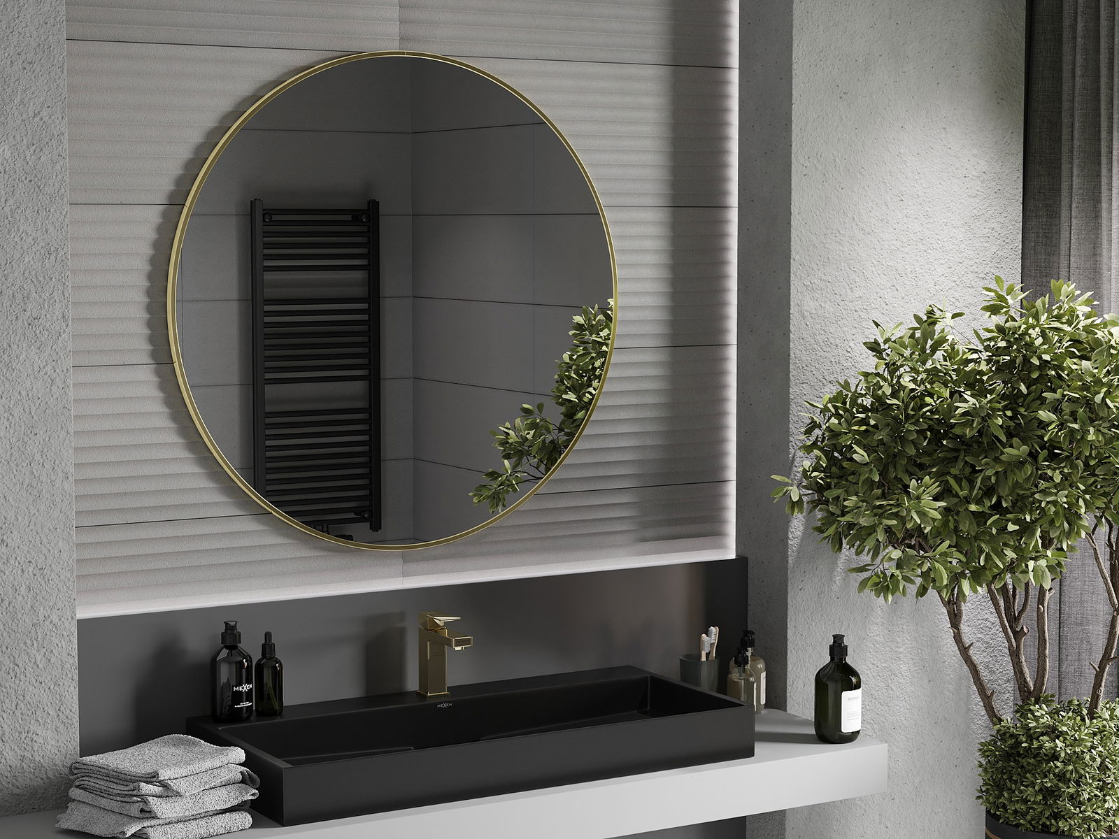 Mexen Loft oglindă baie rotundă 100 cm, ramă aurie - 9850-100-100-000-50