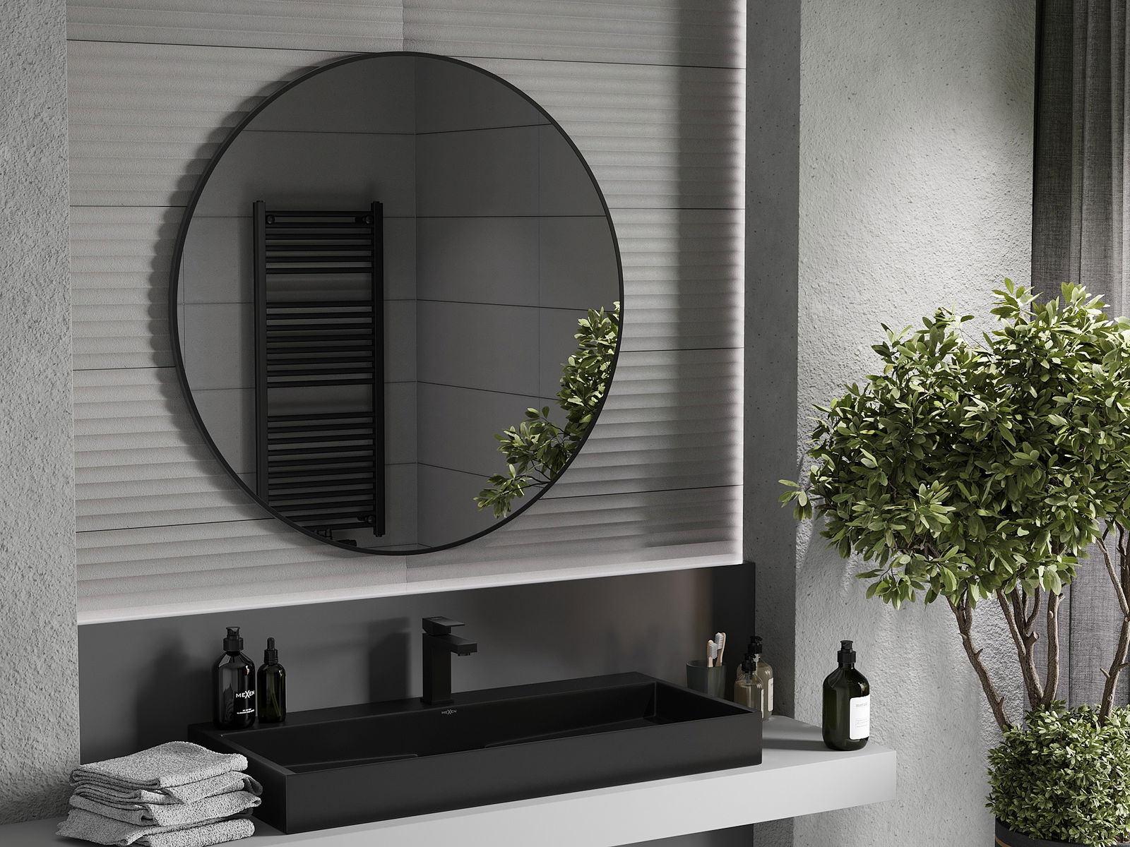 Oglindă Mexen Loft baie rotundă 100 cm, ramă neagră - 9850-100-100-000-70