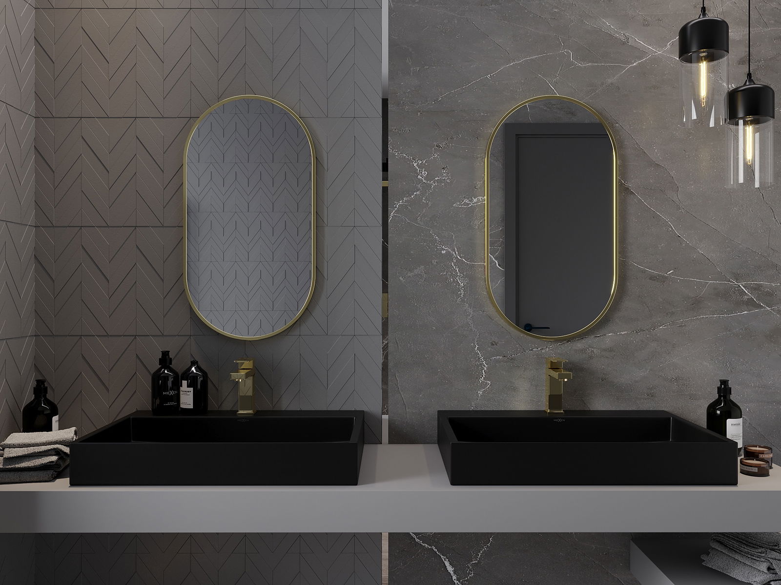 Mexen Loft oglindă de baie ovală 75 x 40 cm, ramă aurie - 9851-075-040-000-50