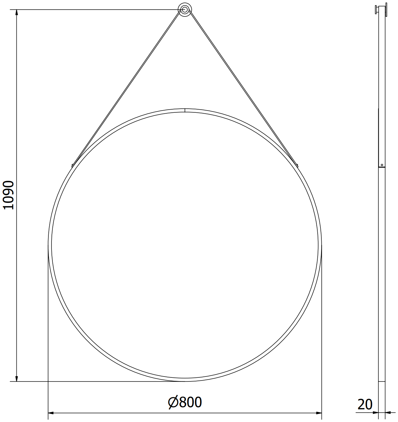 Mexen String oglindă de baie rotundă 80 cm, ramă neagră - 9854-080-080-000-70