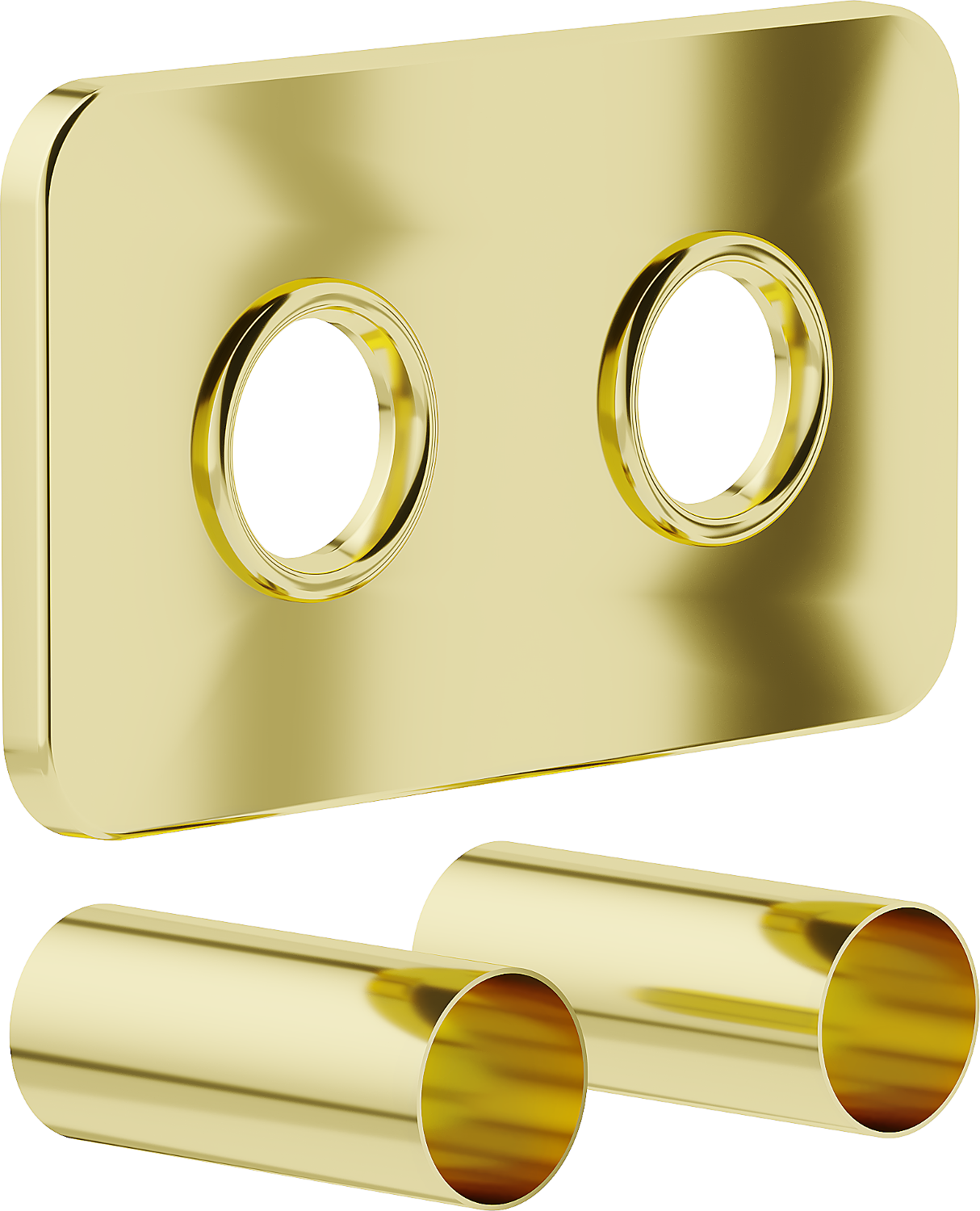 Setul de mascare este compus dintr-o rozetă dublă și două manșoane destinate montării seturilor termostatice și a supapelor pentru radiatoare