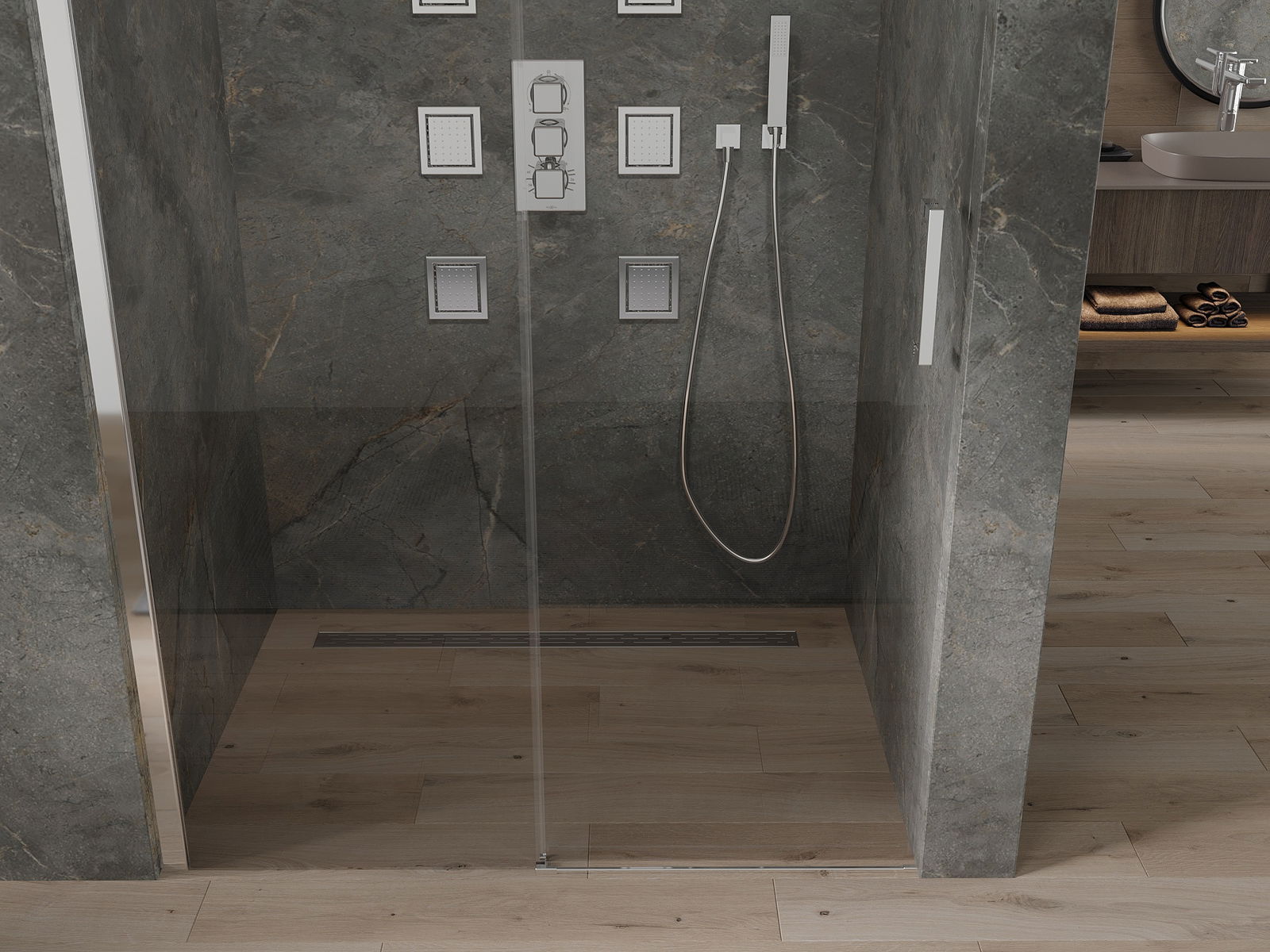 În funcție de nevoile dvs., produsul poate fi montat atât pe tava de duș, cât și direct pe podea. Metoda de montare universală vă permite să adaptați produsul la diferite tipuri de băi și să configurați spațiul.