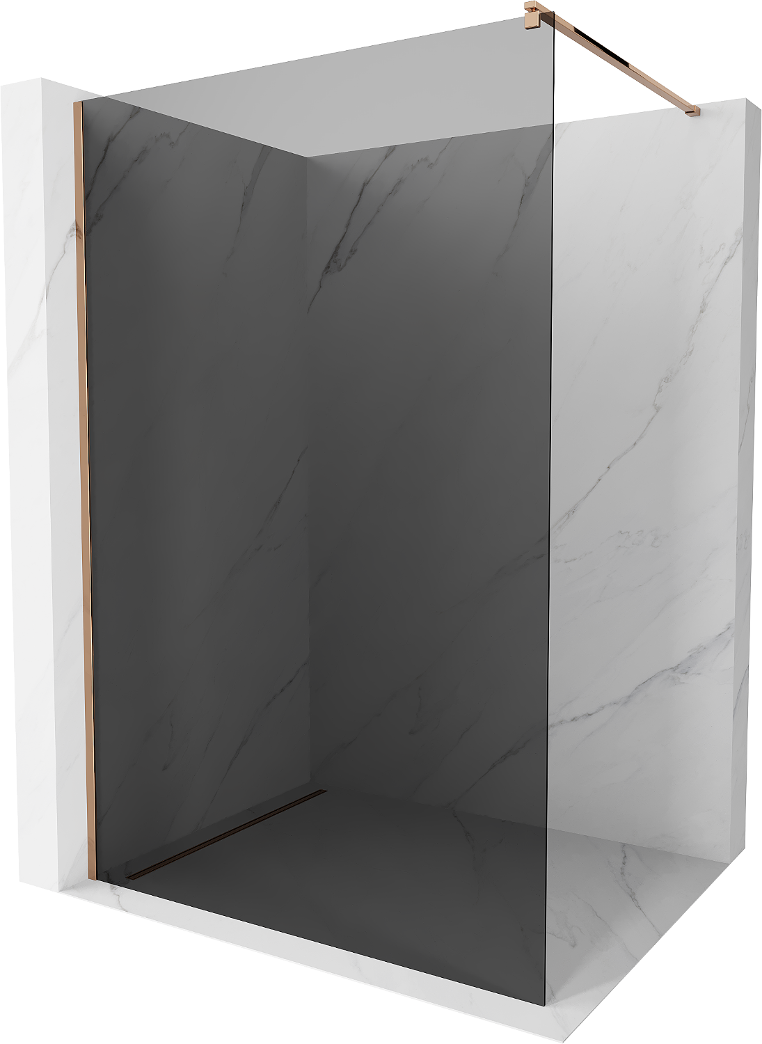 Mexen Kioto perete de duș Walk-in 70 x 200 cm, grafit 8 mm, aur roz - 800-070-101-60-40