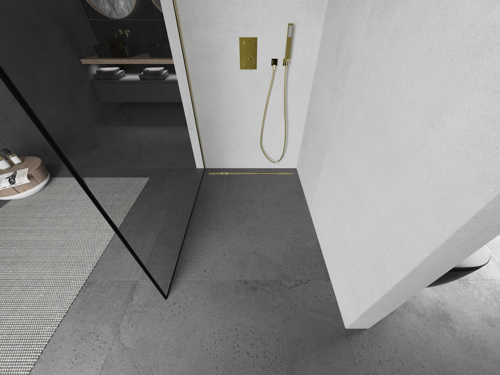 Mexen Kioto perete de duș Walk-in 60 x 200 cm, ramă neagră 8 mm, aurie - 800-060-101-50-70