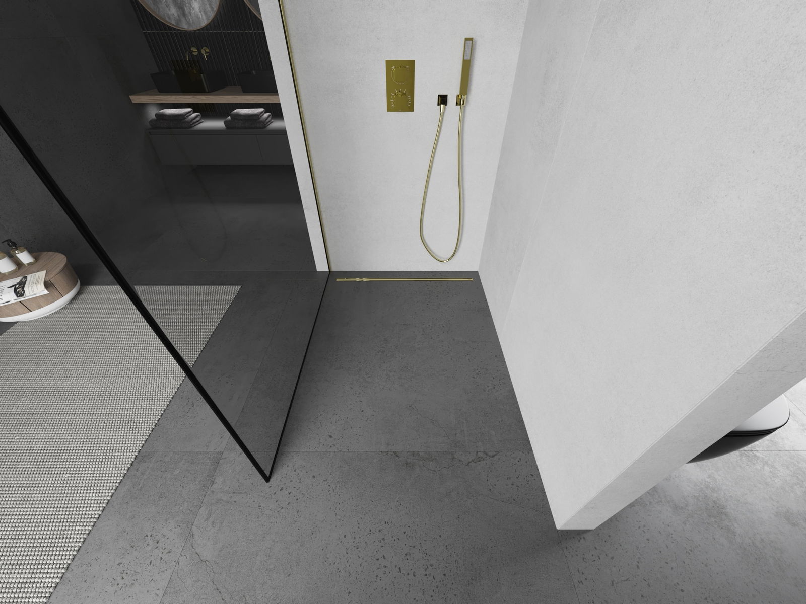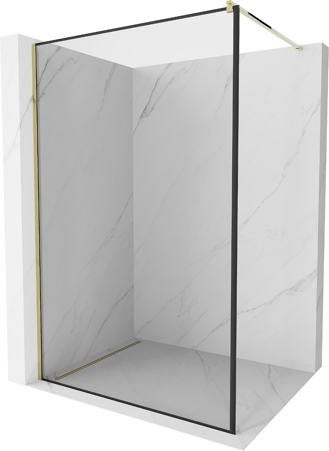 Mexen Kioto perete de duș Walk-in 70 x 200 cm, cadru negru 8 mm, auriu - 800-070-101-50-70