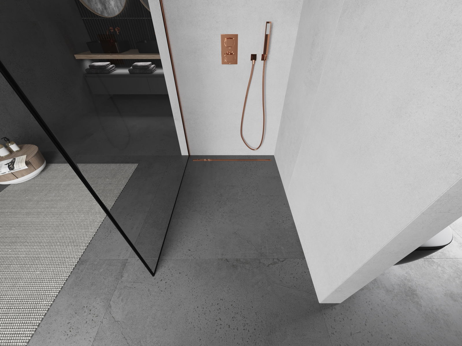 Mexen Kioto perete de duș Walk-in 110 x 200 cm, ramă neagră 8 mm, aur roz - 800-110-101-60-70