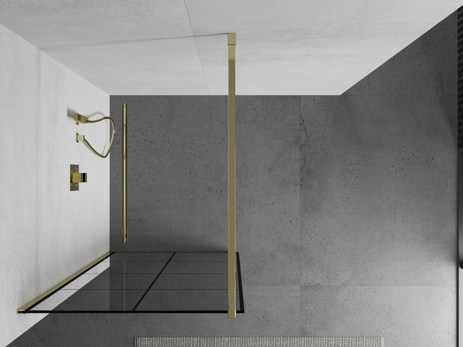 Mexen Kioto perete de duș Walk-in 90 x 200 cm, grilaj negru 8 mm, auriu - 800-090-101-50-77