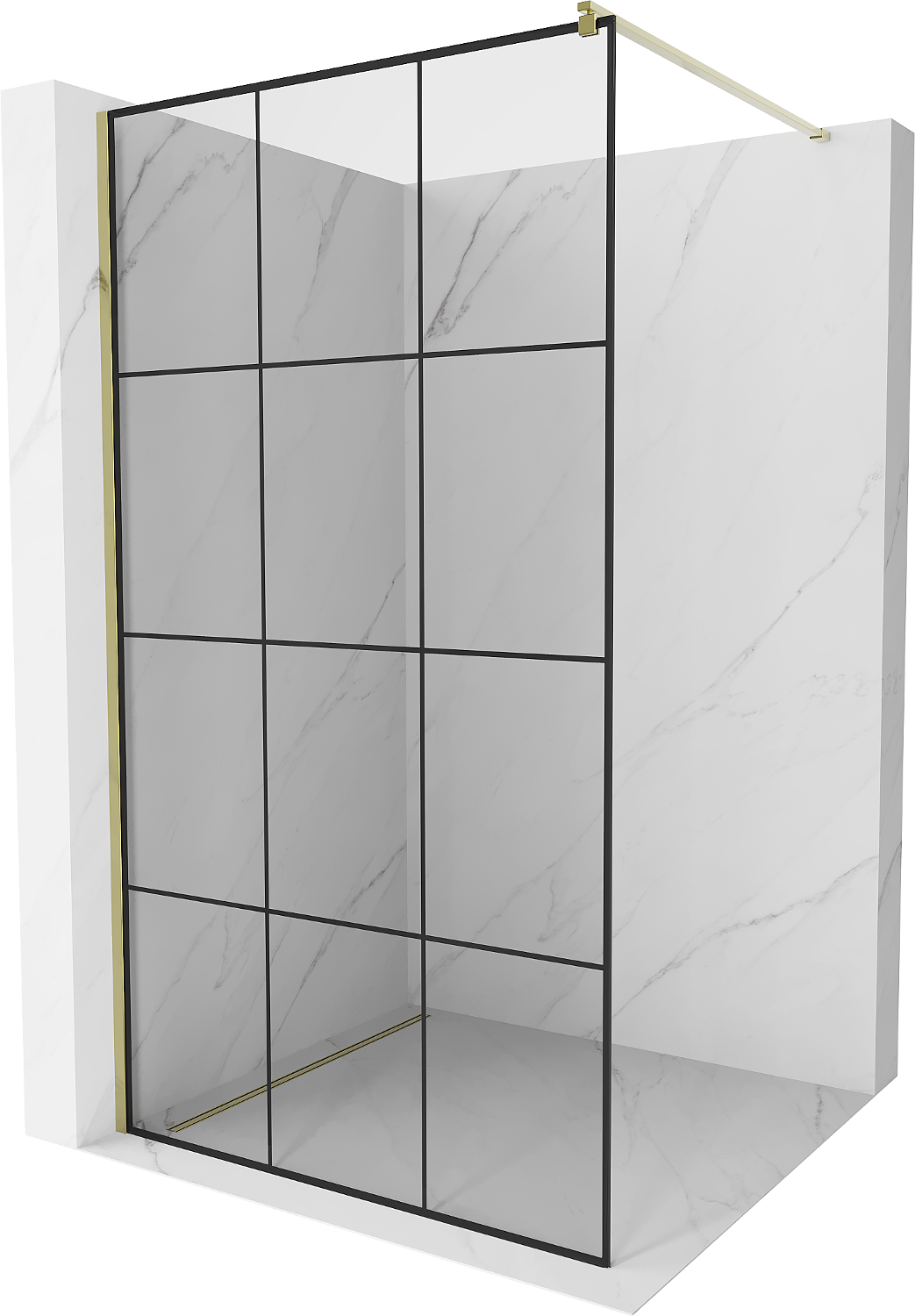 Mexen Kioto perete de duș Walk-in 120 x 200 cm, model grilă neagră 8 mm, auriu - 800-120-101-50-77