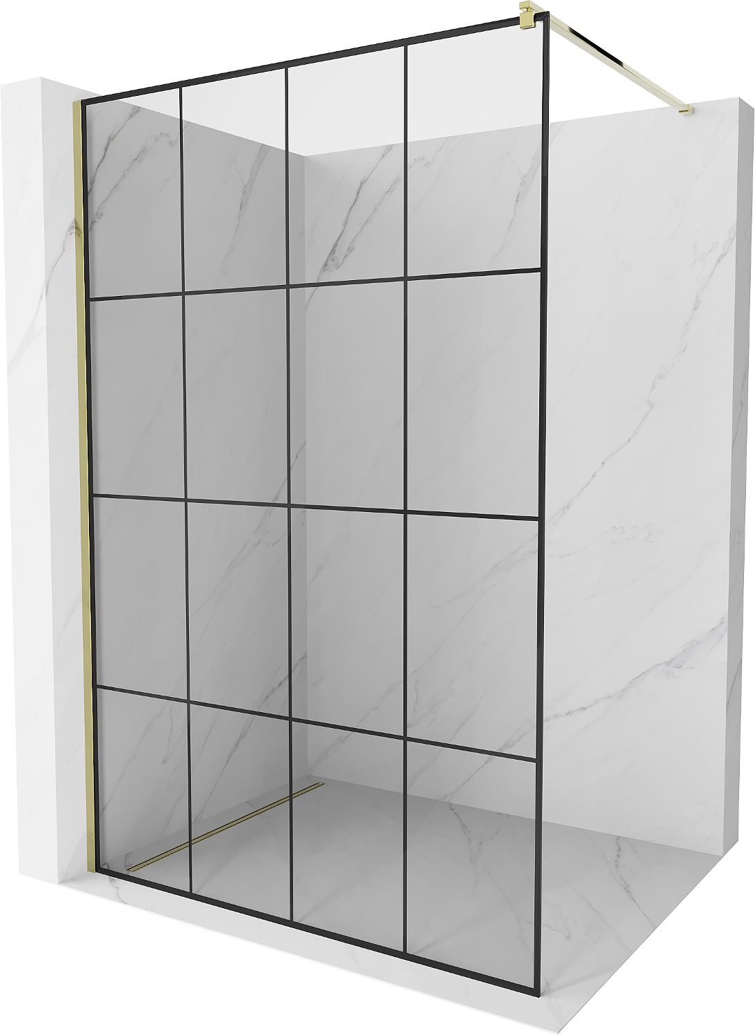 Perete de duș Mexen Kioto Walk-in 130 x 200 cm, grilaj negru 8 mm, auriu - 800-130-101-50-77