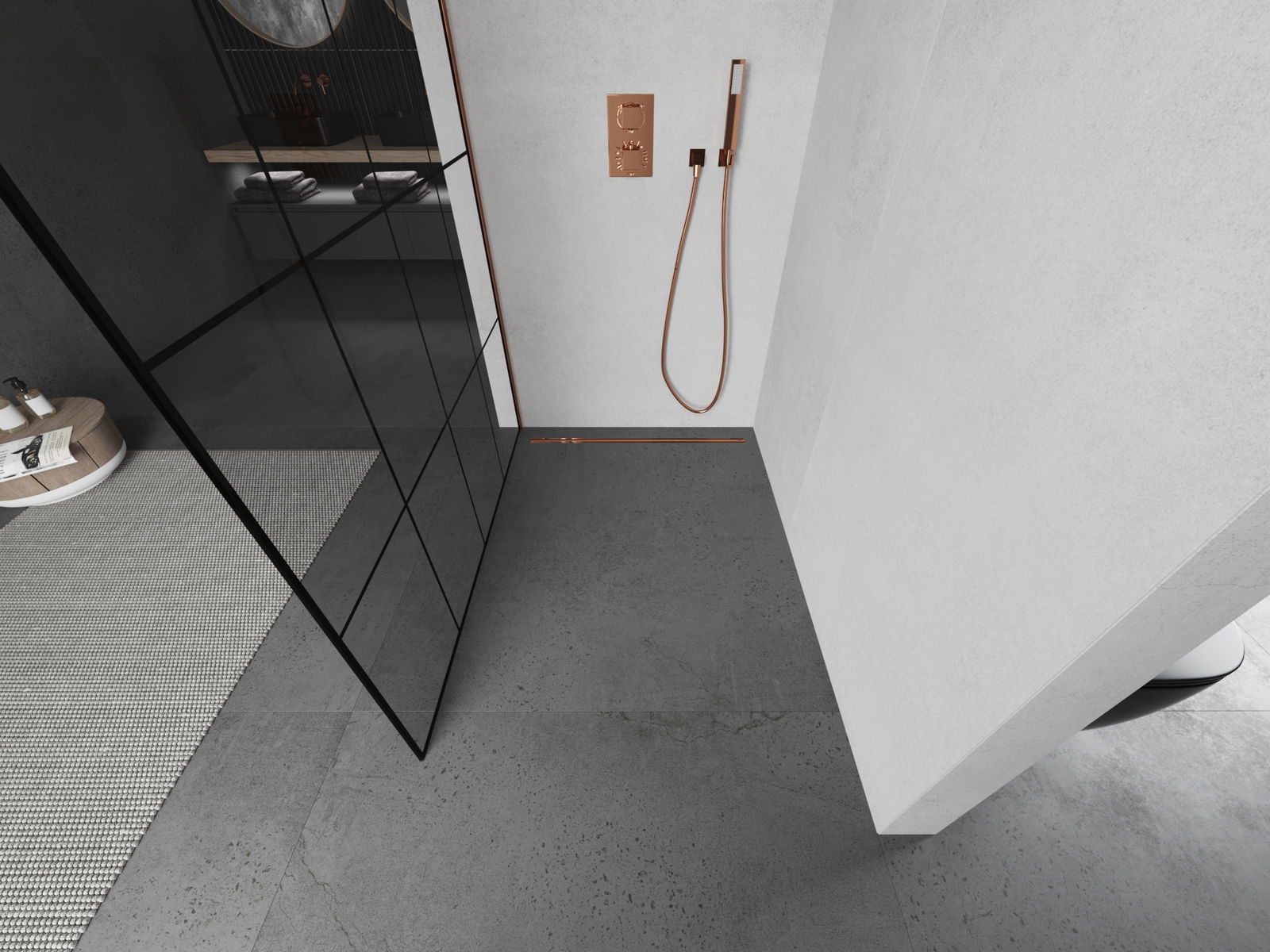 Mexen Kioto perete de duș Walk-in 130 x 200 cm, grilaj negru 8 mm, aur roz - 800-130-101-60-77