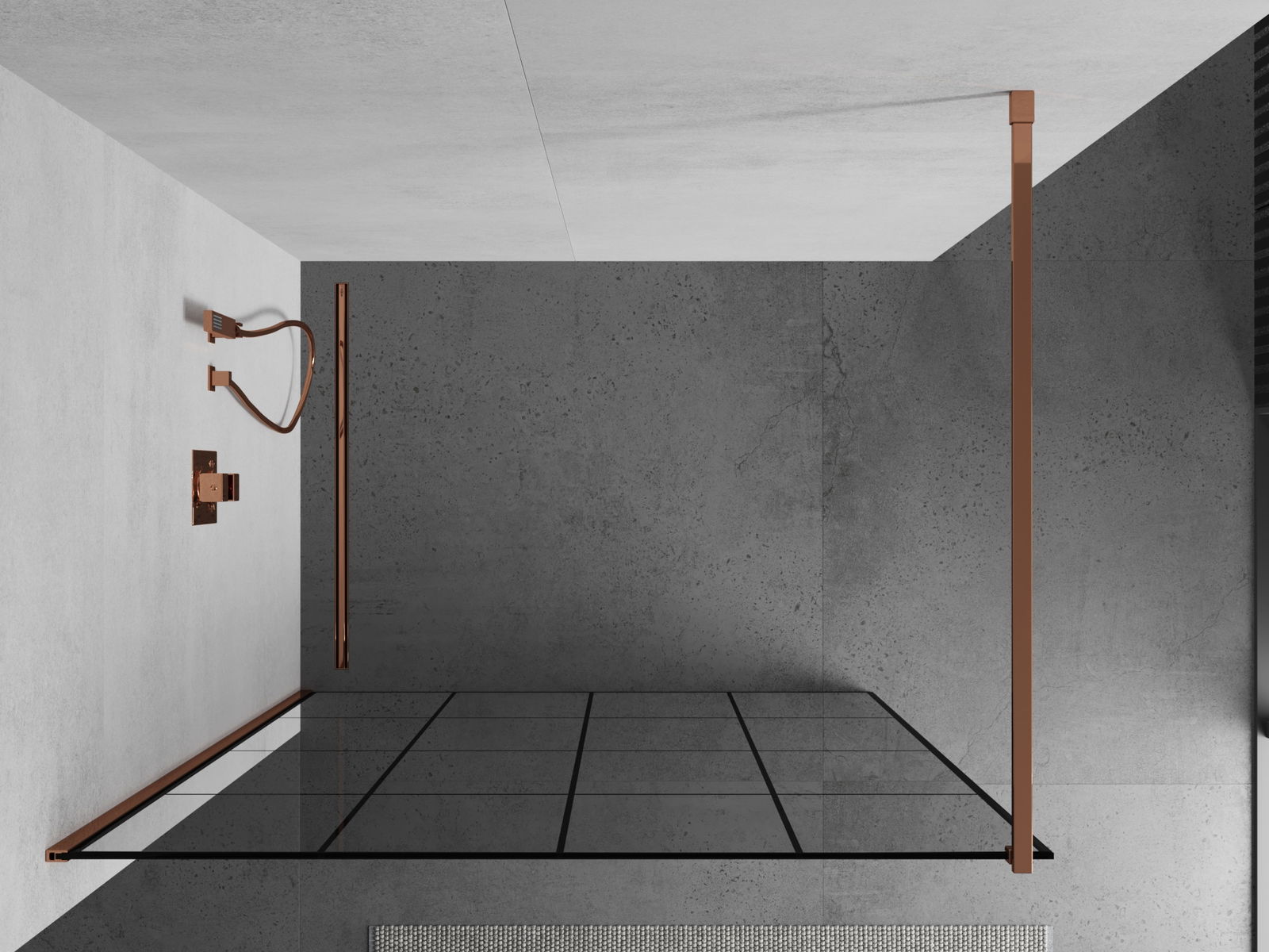 Mexen Kioto perete de duș Walk-in 140 x 200 cm, grilaj negru 8 mm, aur roz - 800-140-101-60-77