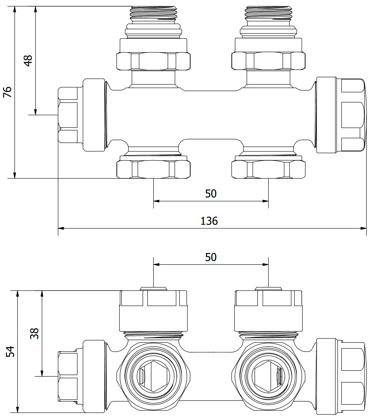 Include fitinguri pentru țevi multistrat 16x2 mm și fitinguri pentru țevi de cupru 15 mm