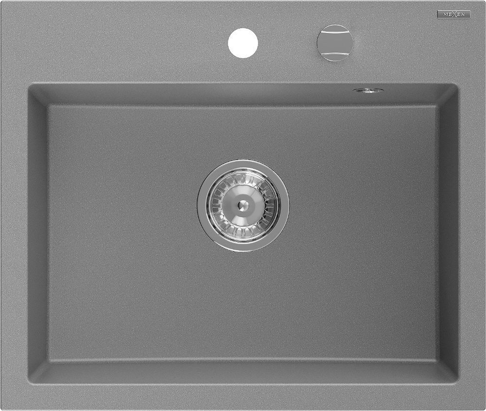 Mexen Oscar chiuvetă de granit cu 1 compartiment 580 x 490 mm, gri, sifon crom - 6519581000-71