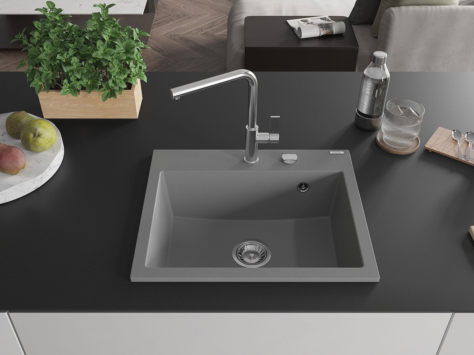 Suprafața chiuvetei este rezistentă la pete și decolorarea, datorită căreia este ușor de curățat și își păstrează culoarea mult timp. Estetică și practic completarea fiecărei bucătării.