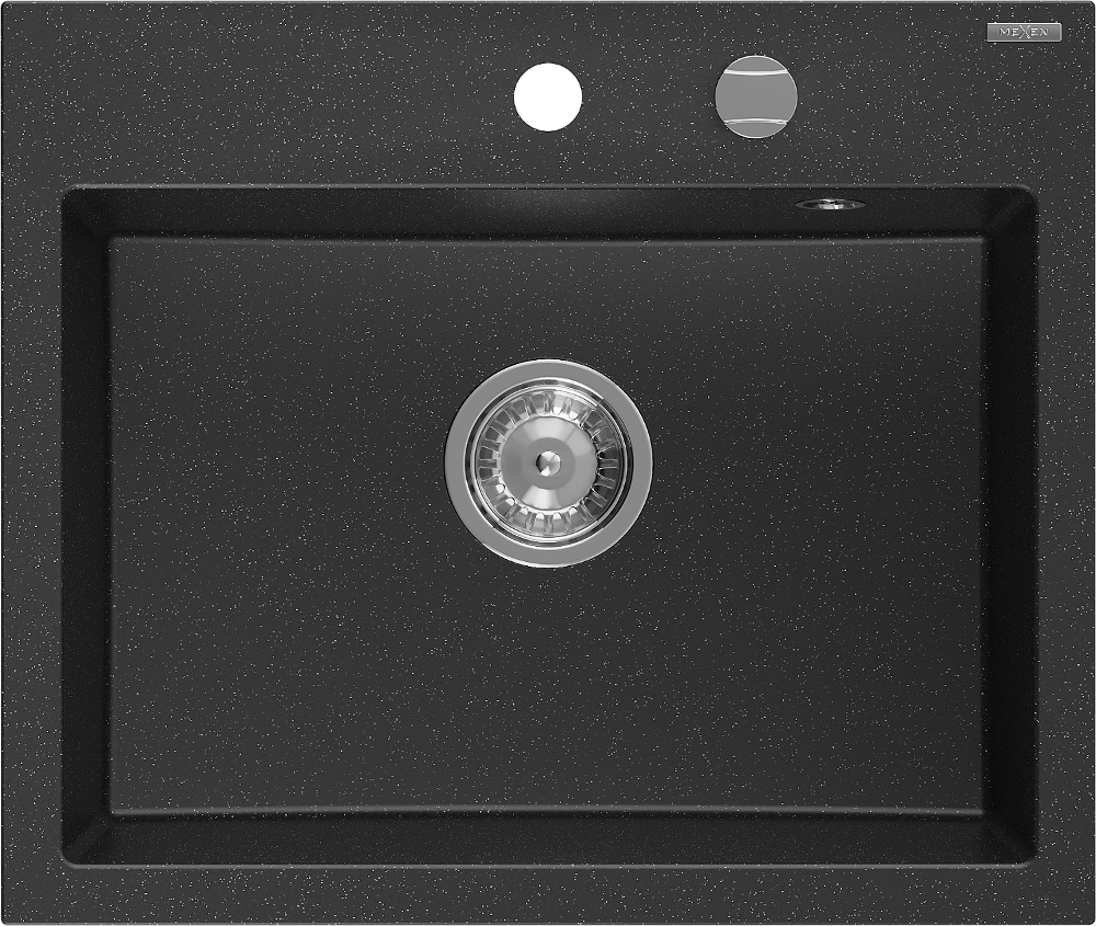 Mexen Oscar chiuvetă de bucătărie din granit 1-cameră 580 x 490 mm, negru/argintiu metalic, sifon crom - 6519581000-73