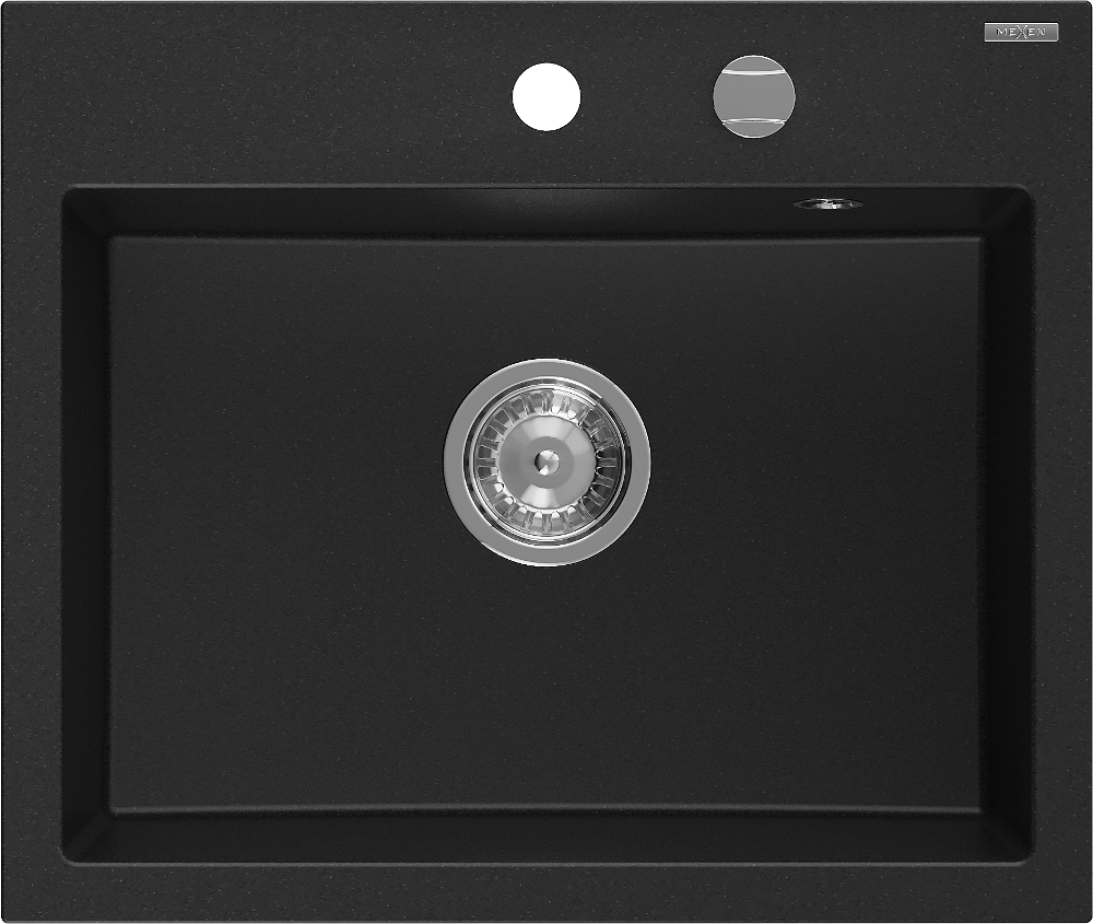 Mexen Oscar chiuvetă din granit cu 1 compartiment 580 x 490 mm, negru, sifon crom - 6519581000-77