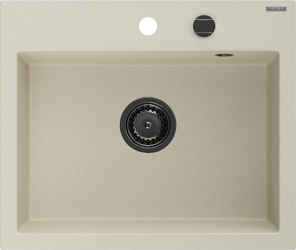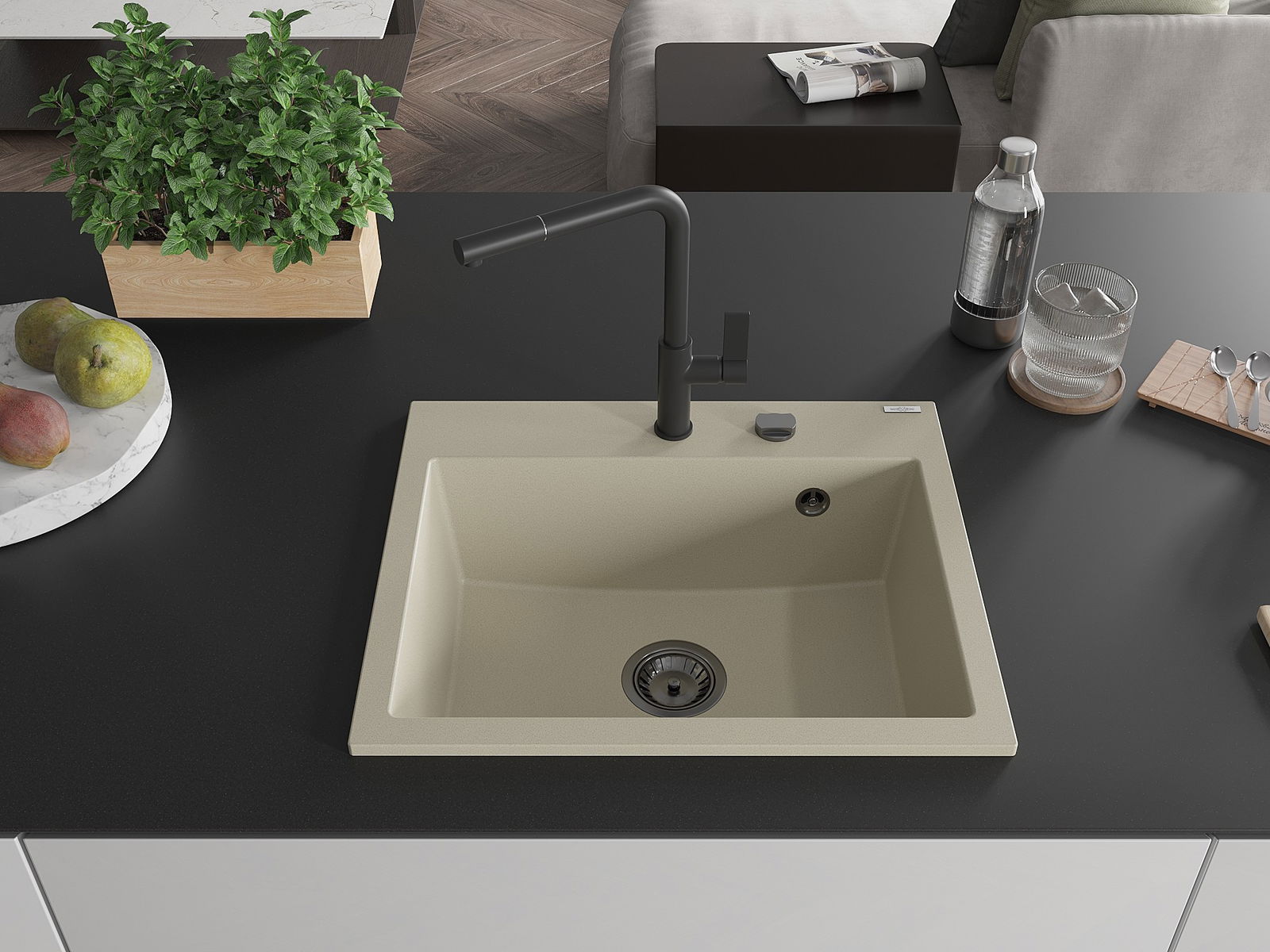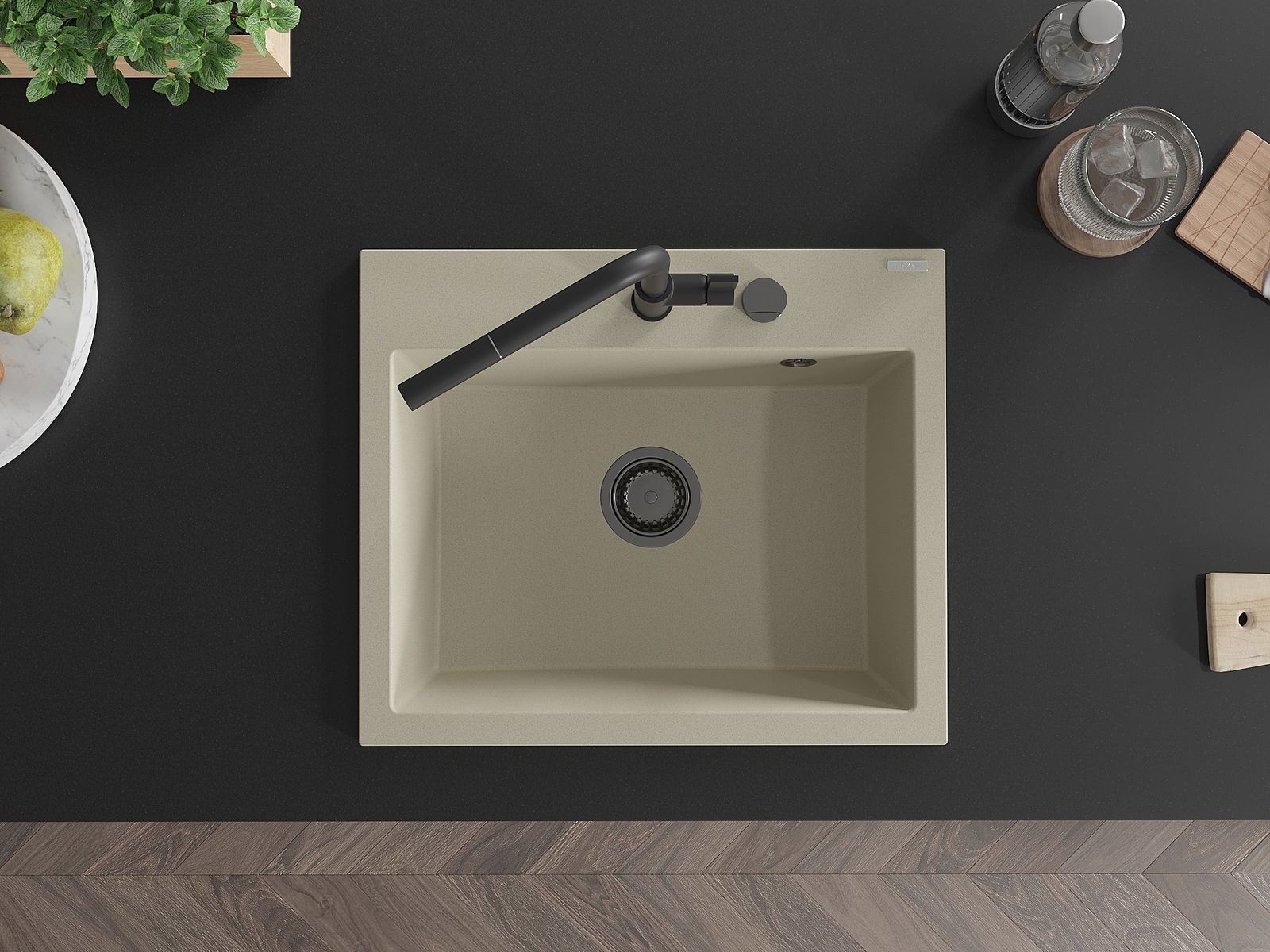 Mexen Oscar chiuvetă granit 1-cam 580 x 490 mm, bej, sifon negru - 6519581000-69-B