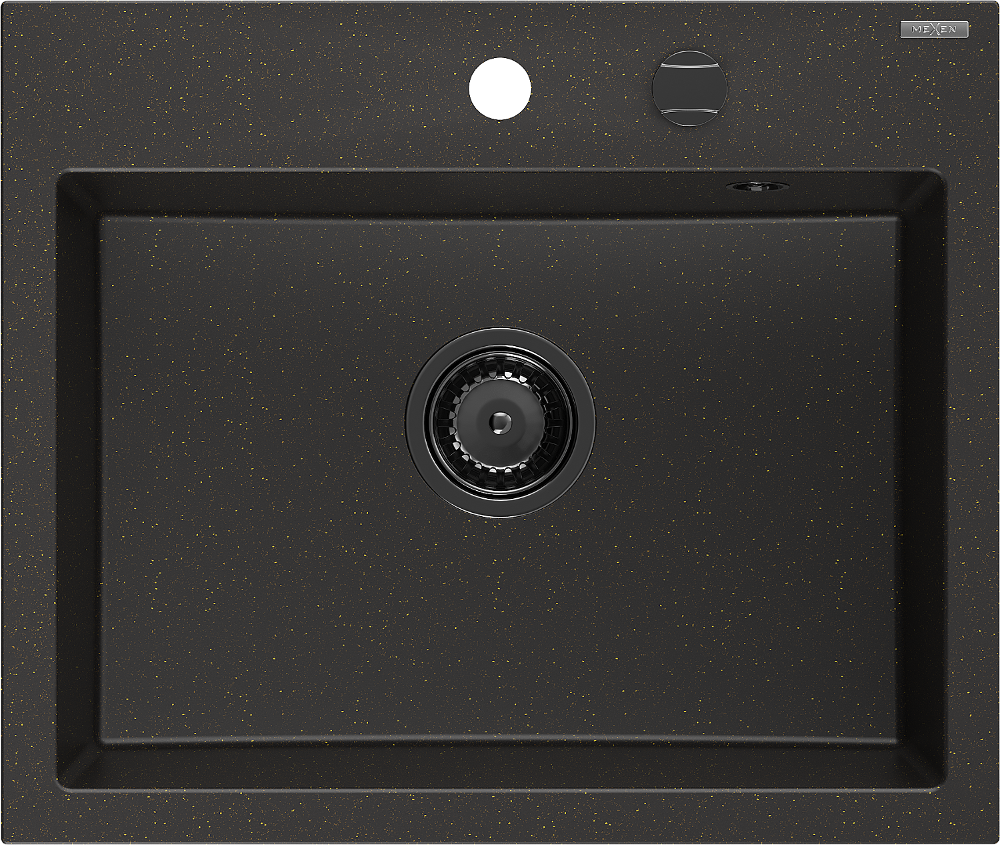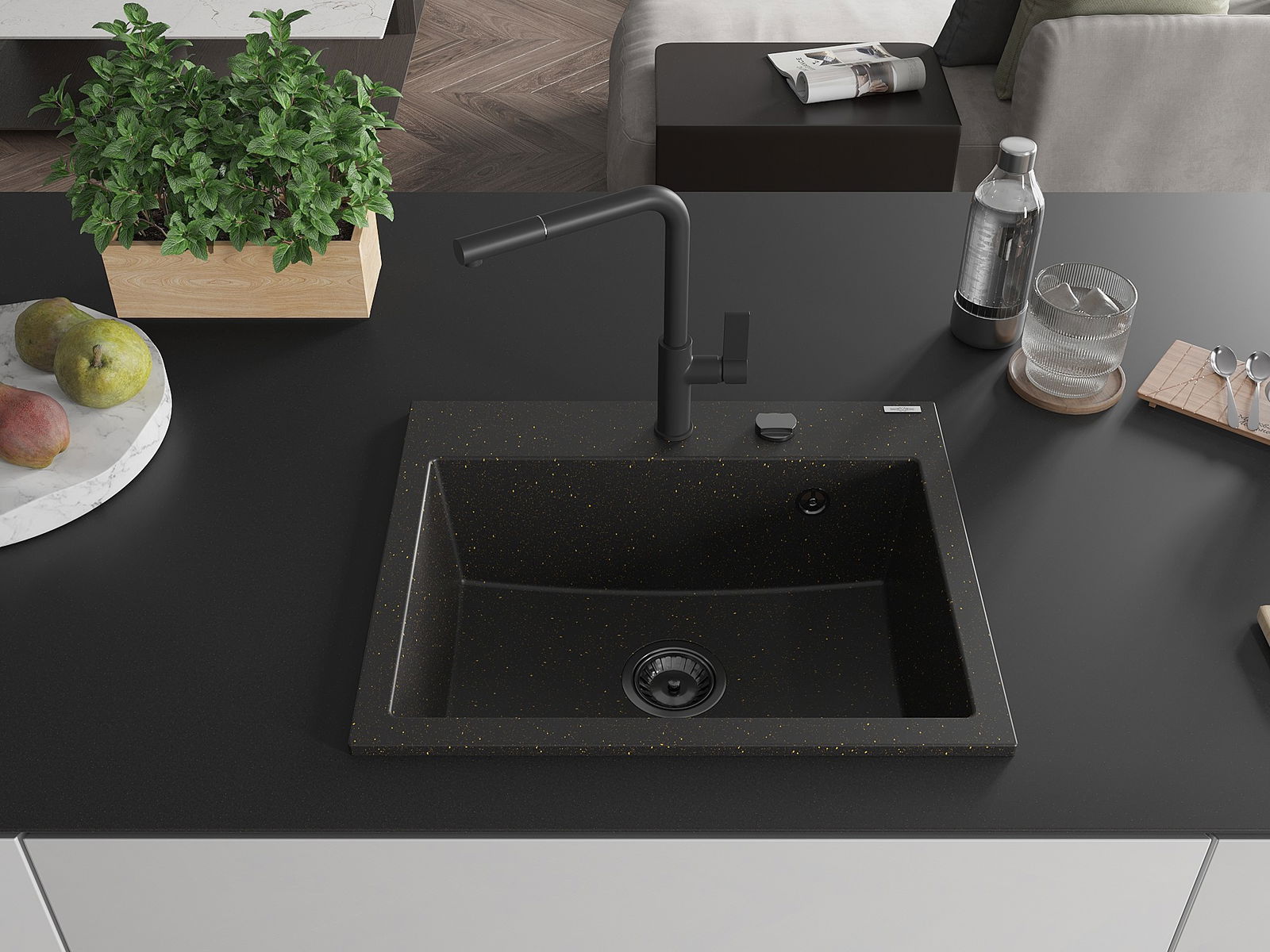Mexen Oscar chiuvetă din granit cu 1 compartiment 580 x 490 mm, negru/aureu metalic, sifon negru - 6519581000-75-B