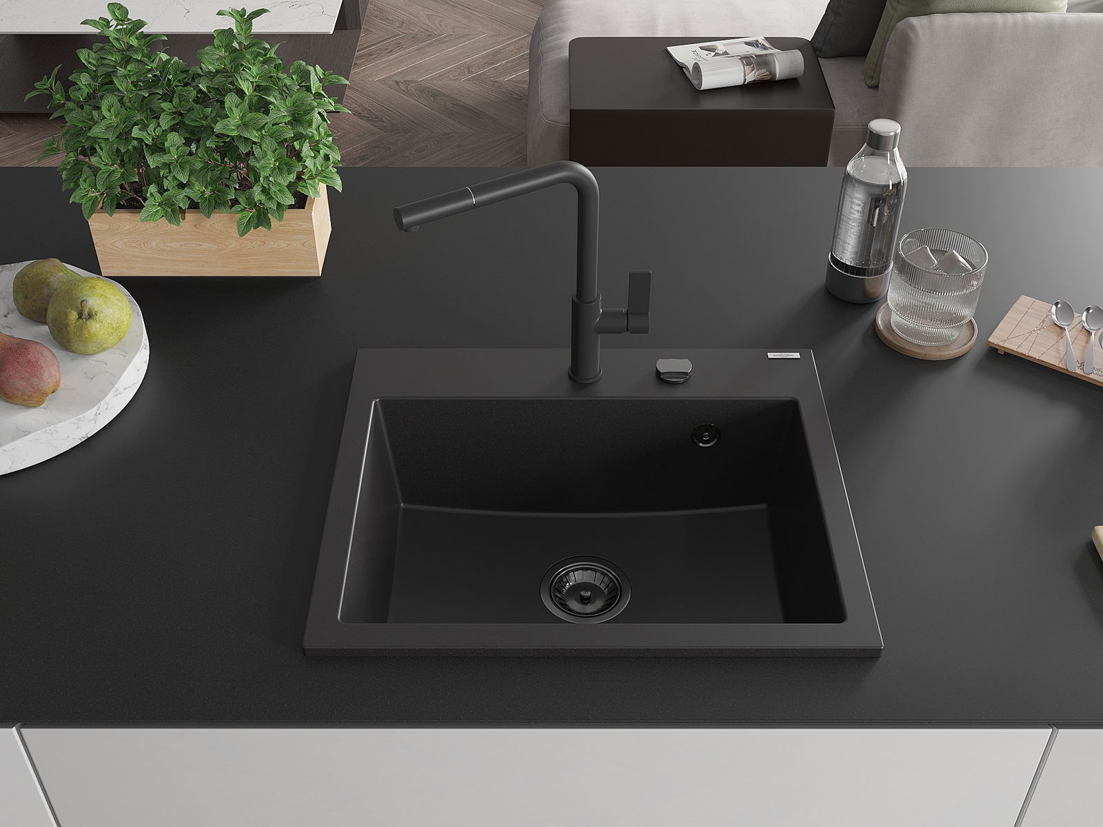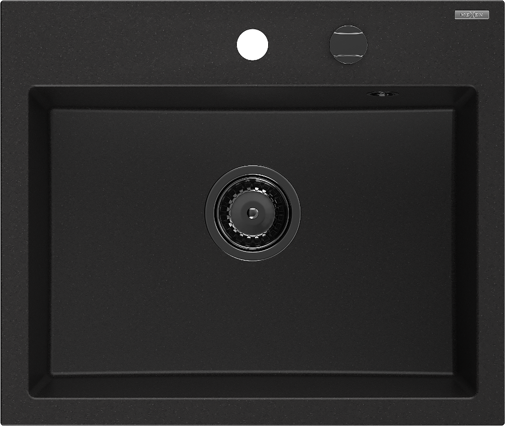 Mexen Oscar chiuvetă de granit cu 1 compartiment 580 x 490 mm, negru, sifon negru - 6519581000-77-B