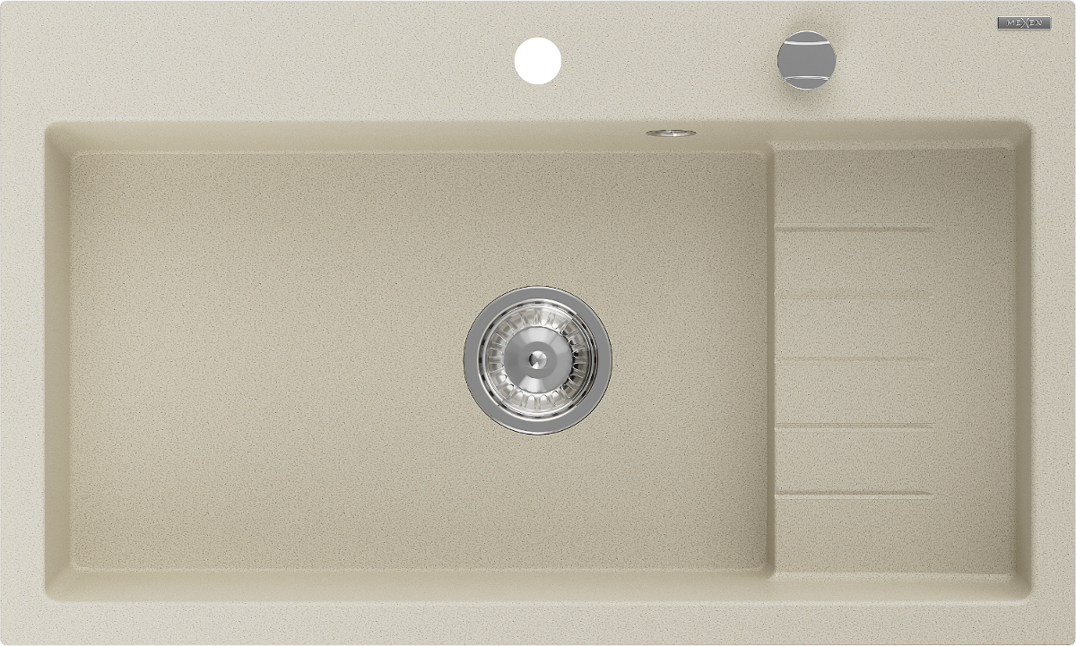 Chiuvetă granitică Mexen Omar 1-cameră 800 x 480 mm, bej, sifon crom - 6520801005-69