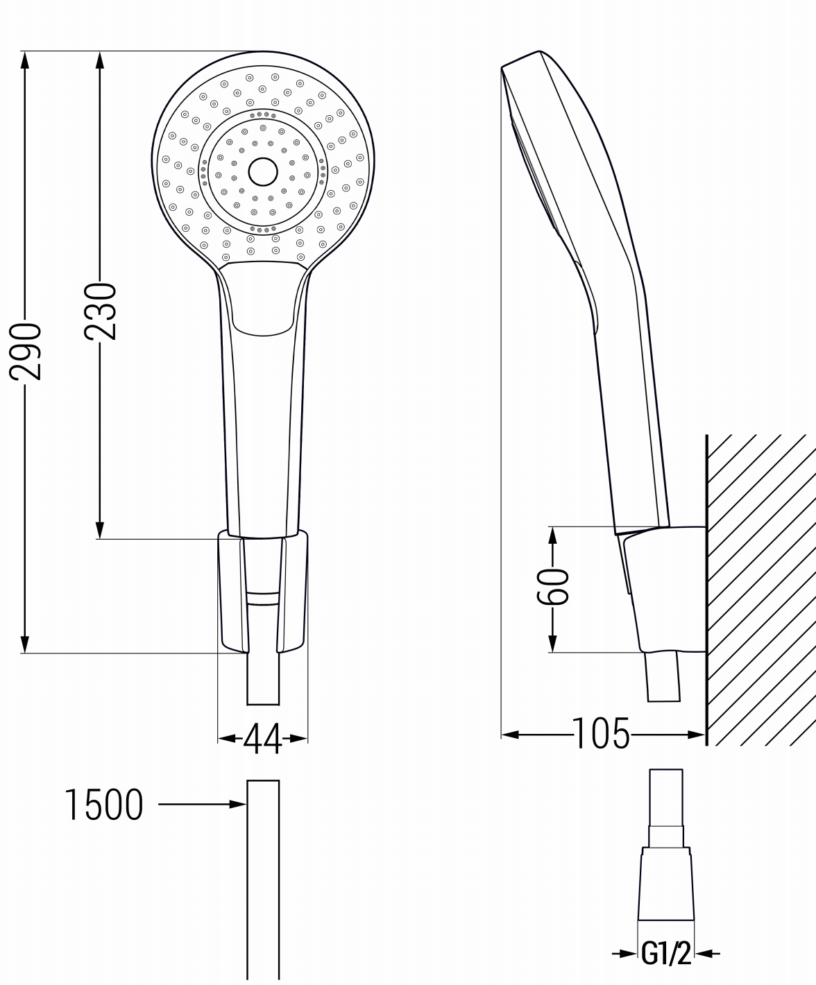 Mânerul de duș are trei tipuri de flux, schimbat cu un comutator. Oferă libertate deplină și capacitatea de a se potrivi cu nevoile utilizatorului, oferind un flux de delicat sau mai puternic și mai concentrat de apă.