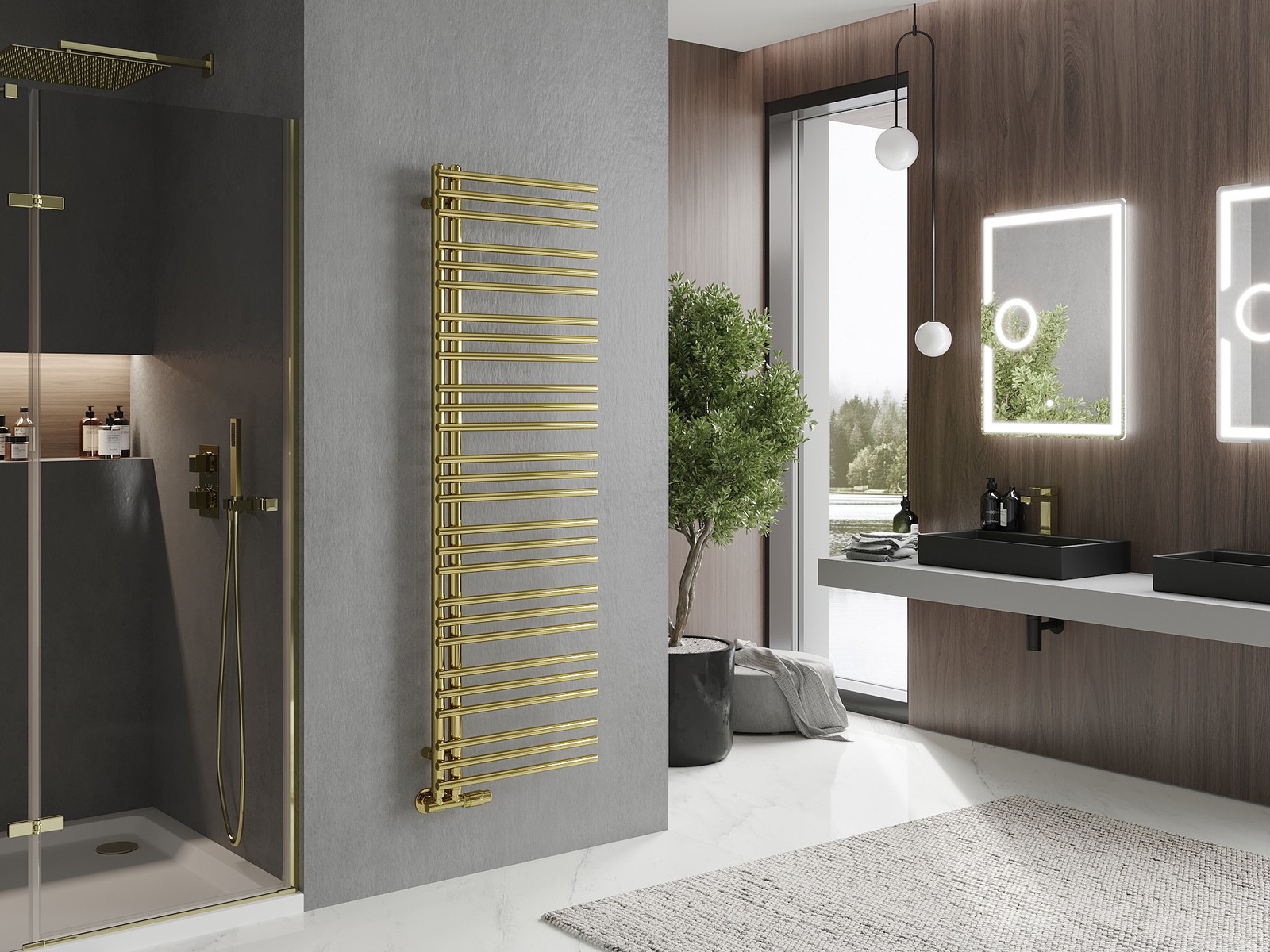 Mexen Neptun este un radiator baie decorativ cu finisaj auriu elegant, care se încadrează perfect în interioarele moderne. Cu dimensiuni impresionante de 1600x500 mm și putere de 523 W asigură o încălzire eficientă. Radiatorul este fabricat din oțel durabil și are un strat de vopsea de înaltă calitate, rezistent la coroziune. Posibilitatea montării unei rezistențe și accesoriile de instalare incluse facilitează montajul. Funcționează la o temperatură ridicată de până la 95 °C și este rezistent la o presiune maximă de 0,6 Mpa.
