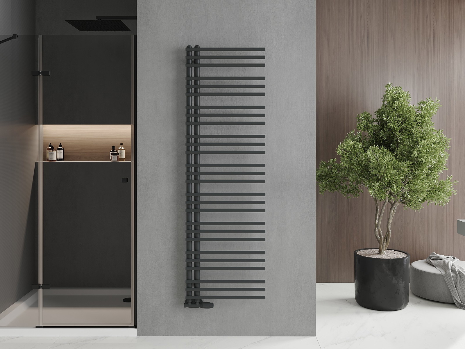 Mexen Neptun este un radiator de baie decorativ, elegant și funcțional, care completează perfect interioarele moderne. Dimensiunile de 1600 x 500 mm și culoarea antracit RAL 7016 îl fac un element stilat în orice baie. Datorită puterii de încălzire de 662 W (la 75/65/20 °C), asigură încălzirea eficientă a spațiului. Fabricat din oțel durabil, cu reacție la foc A1, este rezistent la coroziune și ușor de montat datorită setului de fixare inclus. Mexen Neptun oferă, de asemenea, opțiunea de a monta o rezistență electrică și are conexiuni centrale 4xG ½″.