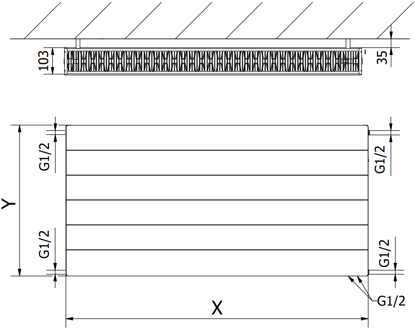- 2xG ½″ de jos din partea dreaptă sau stângă