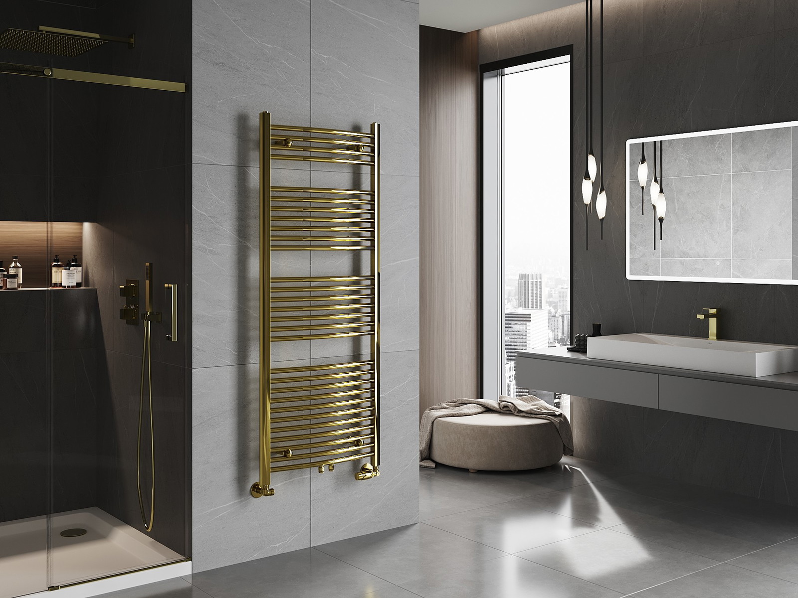 Mexen Ares este un radiator elegant pentru baie, cu dimensiuni de 1500 x 600 mm, care îmbină perfect funcționalitatea cu designul modern. Cu o putere de 579 W, încălzește rapid orice baie, iar culoarea aurie adaugă interiorului un caracter luxos. Radiatorul este fabricat din oțel, garantând durabilitatea sa, iar stratul rezistent la coroziune asigură longevitatea utilizării. Construcția sa bine gândită permite diferite opțiuni de conectare și montare a rezistenței, facilitând considerabil instalarea.