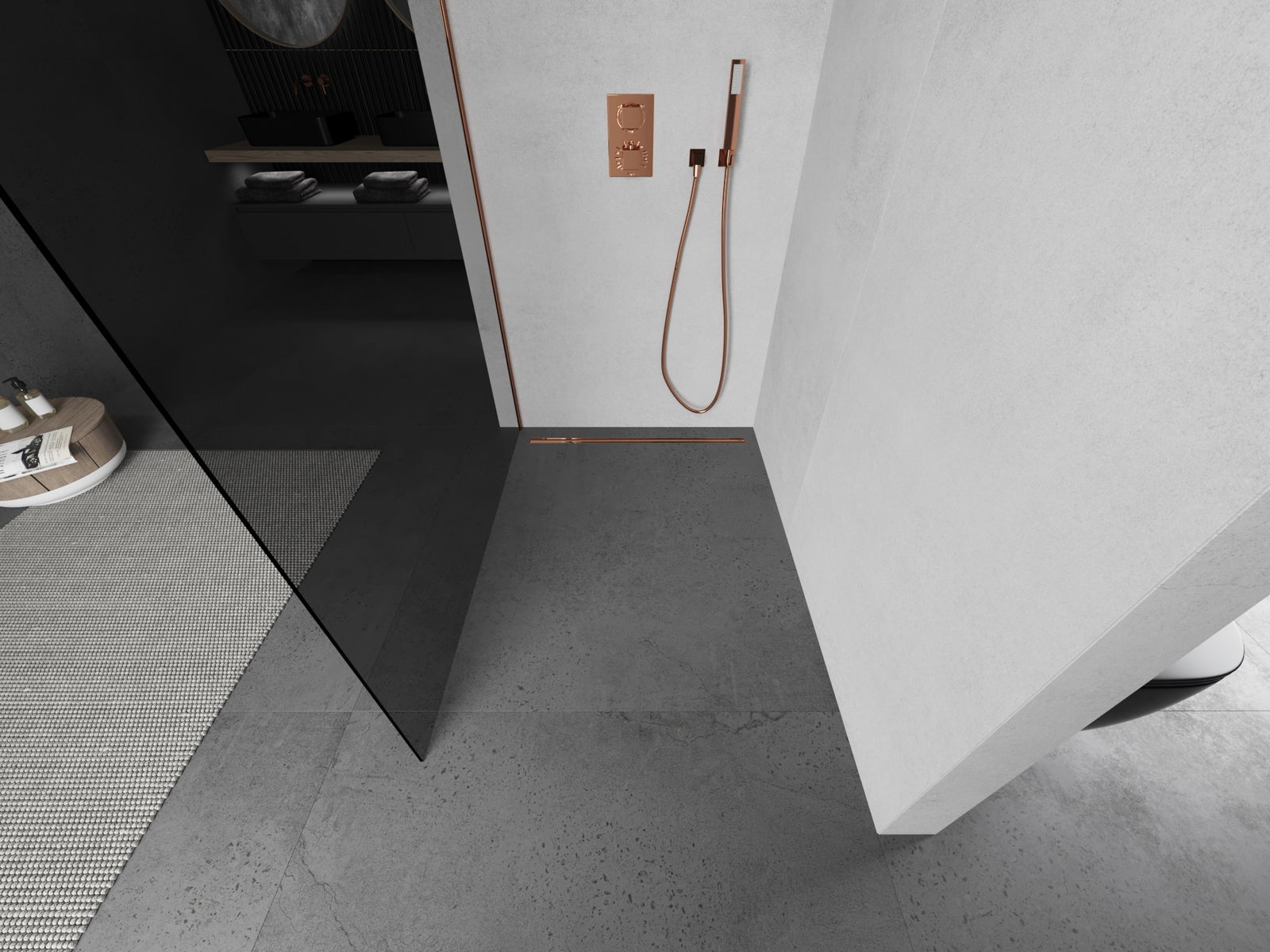 Perete de duș Mexen Kioto Walk-in 130 x 200 cm, grafit 8 mm, aur roz - 800-130-101-60-40