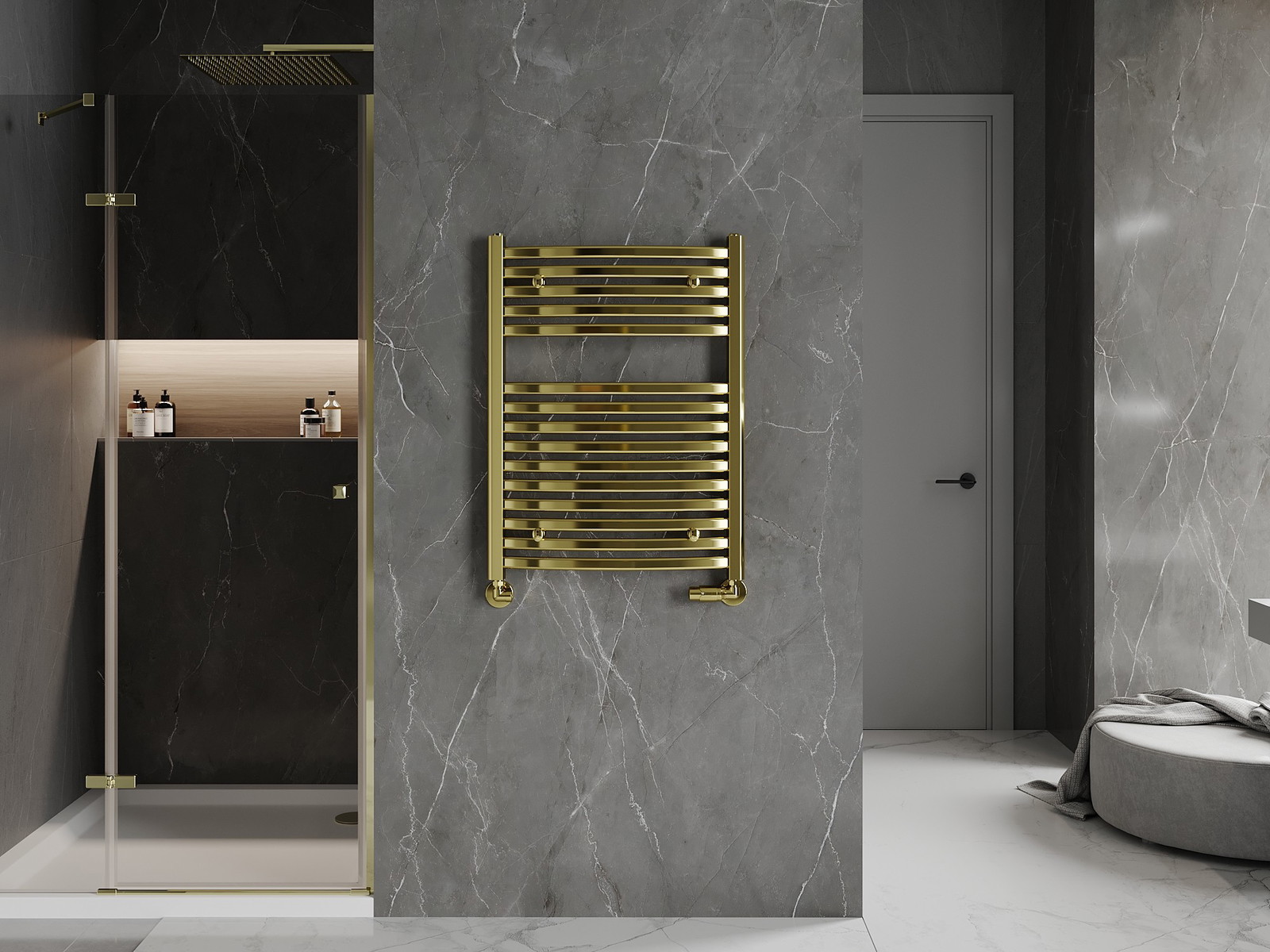 Radiatorul de baie Mexen Helios este o alegere excelentă pentru orice baie. Se caracterizează printr-un finisaj auriu elegant, care se potrivește atât în decoruri moderne, cât și clasice. Cu dimensiuni de 800 x 600 mm și o putere de 354 W, asigură o încălzire optimă. Fabricat din oțel, este rezistent la coroziune datorită stratului de vopsea durabil. Temperatura sa maximă de funcționare este de 95 °C, iar presiunea de lucru este de 0,6 Mpa. Posibilitatea de a monta o rezistență electrică și dimensiunile practice fac ca instalarea să fie extrem de simplă. Setul include și accesoriile de montaj necesare.