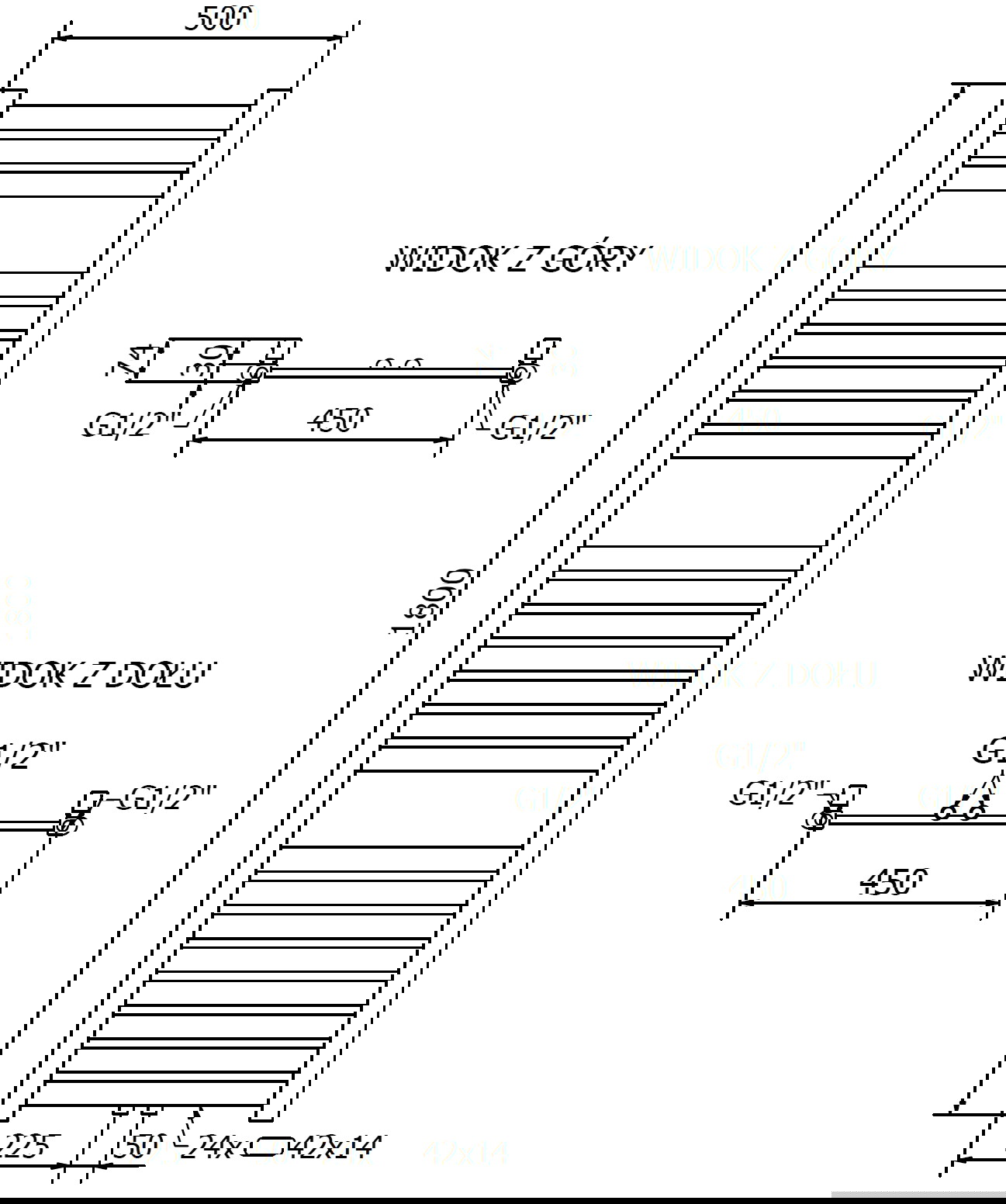 - 4xG ½″ de sus și de jos, pe partea dreaptă sau stângă