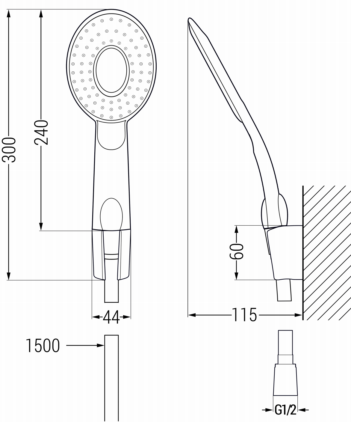 Furtunul de duș este din plastic din PVC foarte durabil și flexibil. Este rezistent la temperaturi ridicate și la presiunea ridicată a apei, iar structura sa moale și netedă nu atrage o suprafață de cadă sau duș.