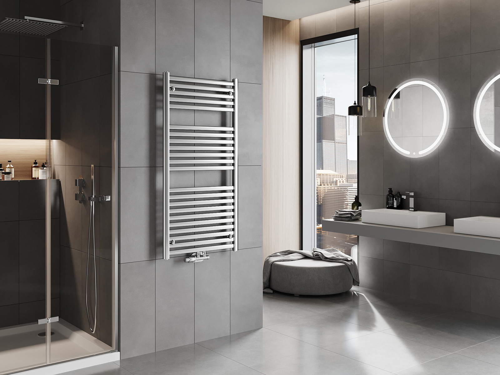 Radiatorul de baie Mexen Hades cu dimensiuni de 1200 x 600 mm este o combinație excelentă de design modern și performanță ridicată. Fabricat din oțel cromat, oferă o putere de încălzire de 527 W la o temperatură de 75/65/20 °C și o temperatură maximă de funcționare de până la 95 °C. Produsul este echipat cu diverse conexiuni ce permit o conectare flexibilă și un strat de acoperire de înaltă calitate, rezistent la coroziune. Setul include suporturi, set de montaj, capace și aerisitor.