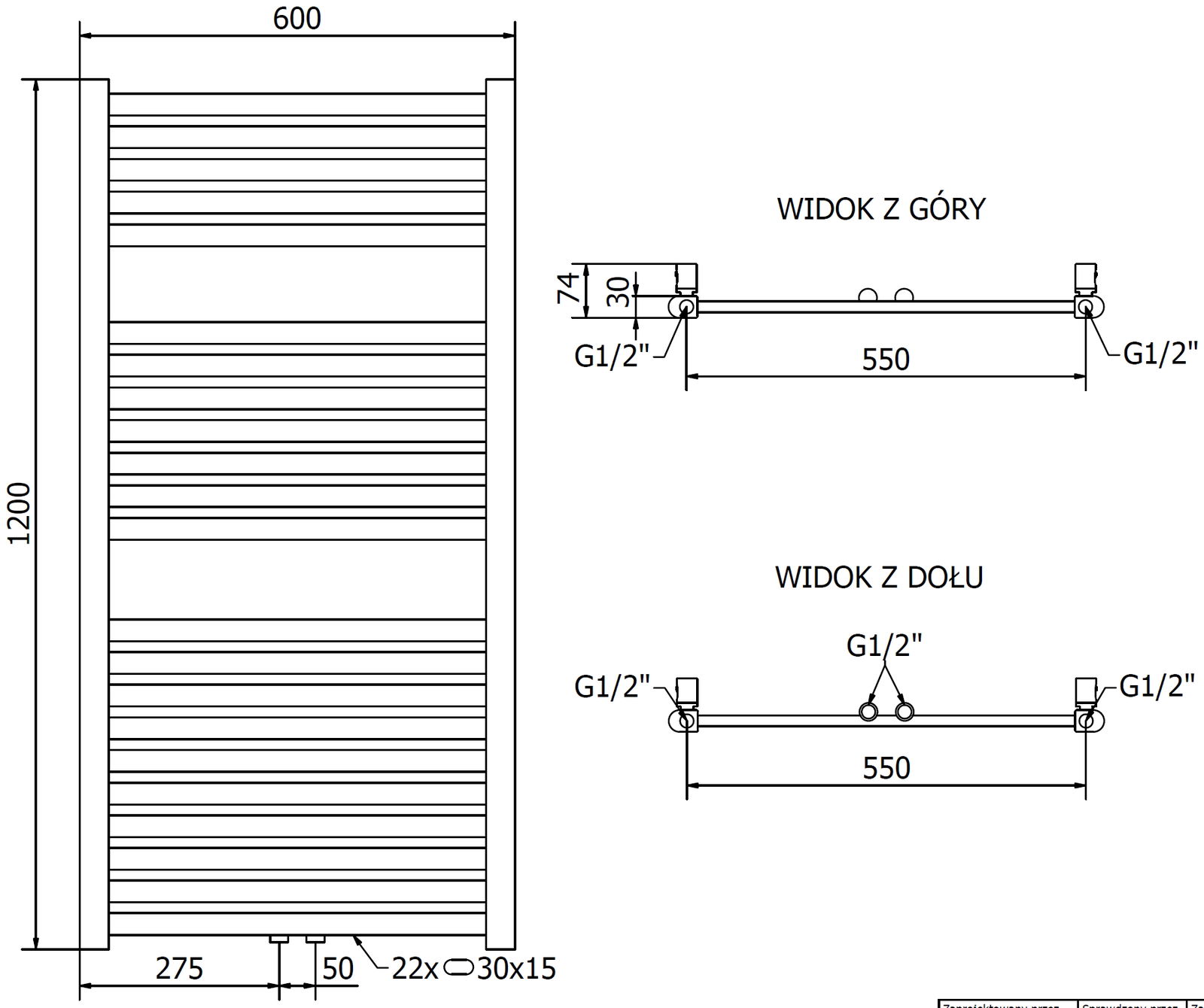- 55 cm (inferioară) sau 5 cm (centrală)