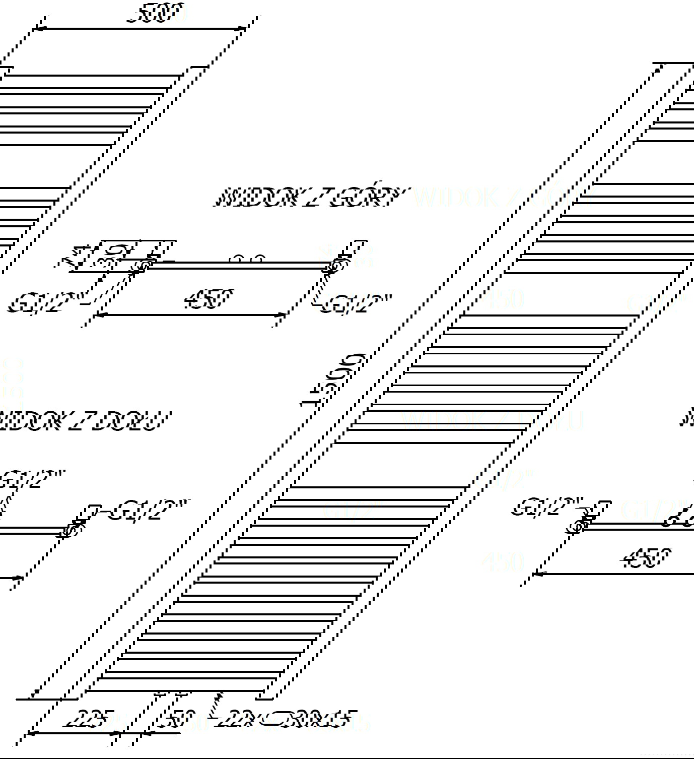 - 4xG ½″ de sus și de jos din partea dreaptă sau stângă