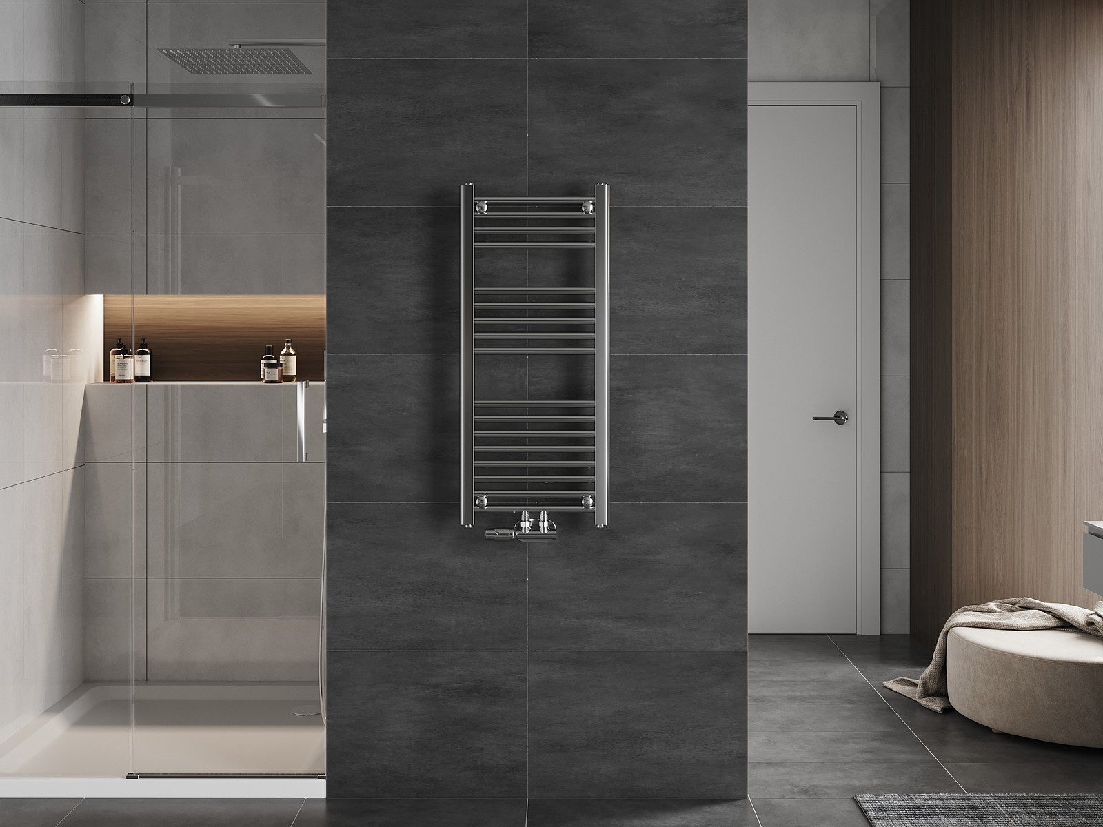 Mexen Mars este un radiator de baie modern, care îmbină stilul cu funcționalitatea. Datorită dimensiunilor de 900 x 400 mm și puterii de 244 W, va încălzi eficient chiar și o baie mare. Fabricat din oțel de înaltă calitate și acoperit cu un strat cromat durabil, este rezistent la coroziune și deteriorări. Mexen Mars poate fi montat în diverse moduri datorită racordurilor flexibile. Setul conține toate accesoriile necesare pentru montaj. Temperatura sa de lucru ridicată (până la 95 °C) și posibilitatea de instalare a unei rezistențe electrice aduc un plus de confort în utilizare.