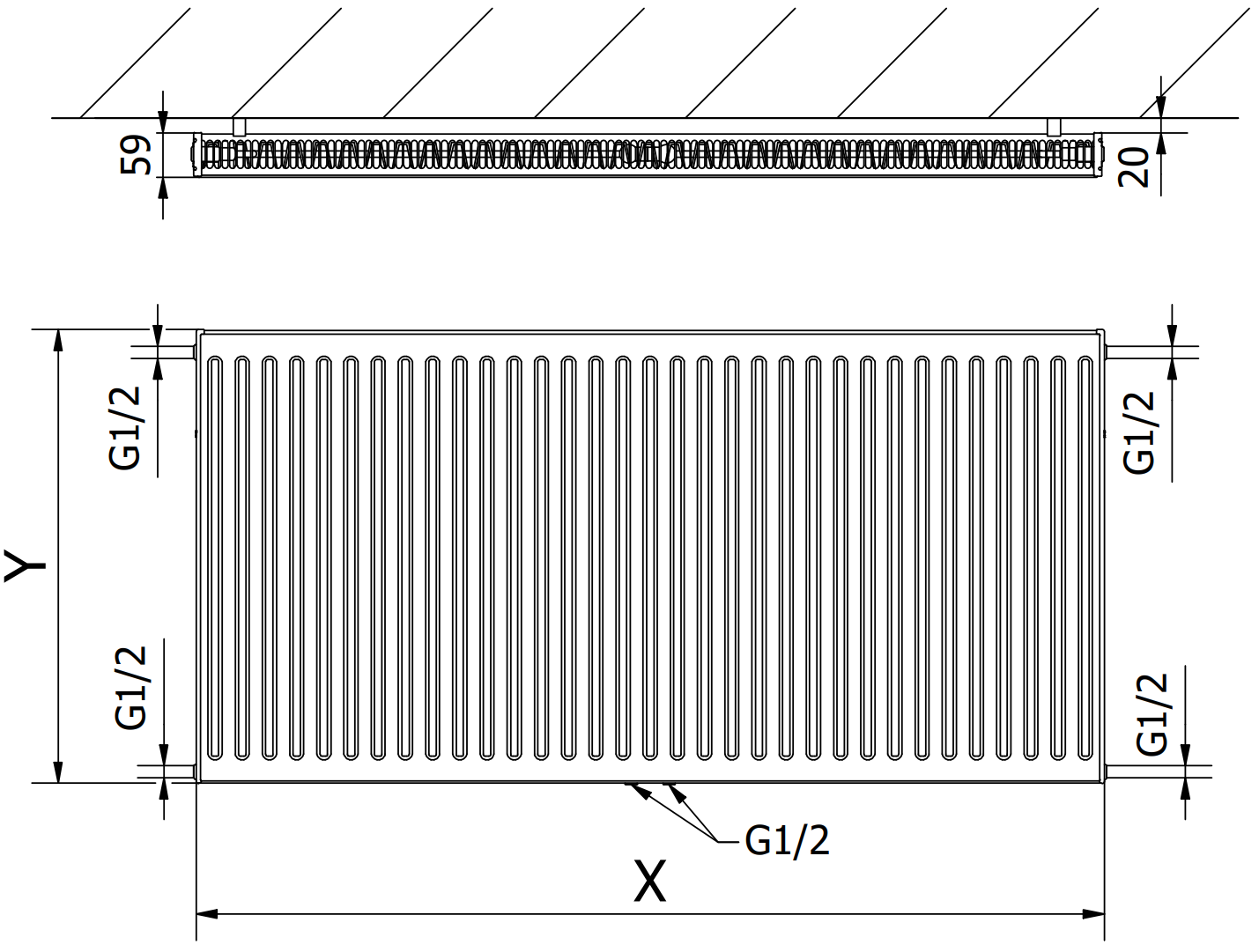 Imaginile prezintă radiatorul în dimensiunea 600 x 1200 mm.