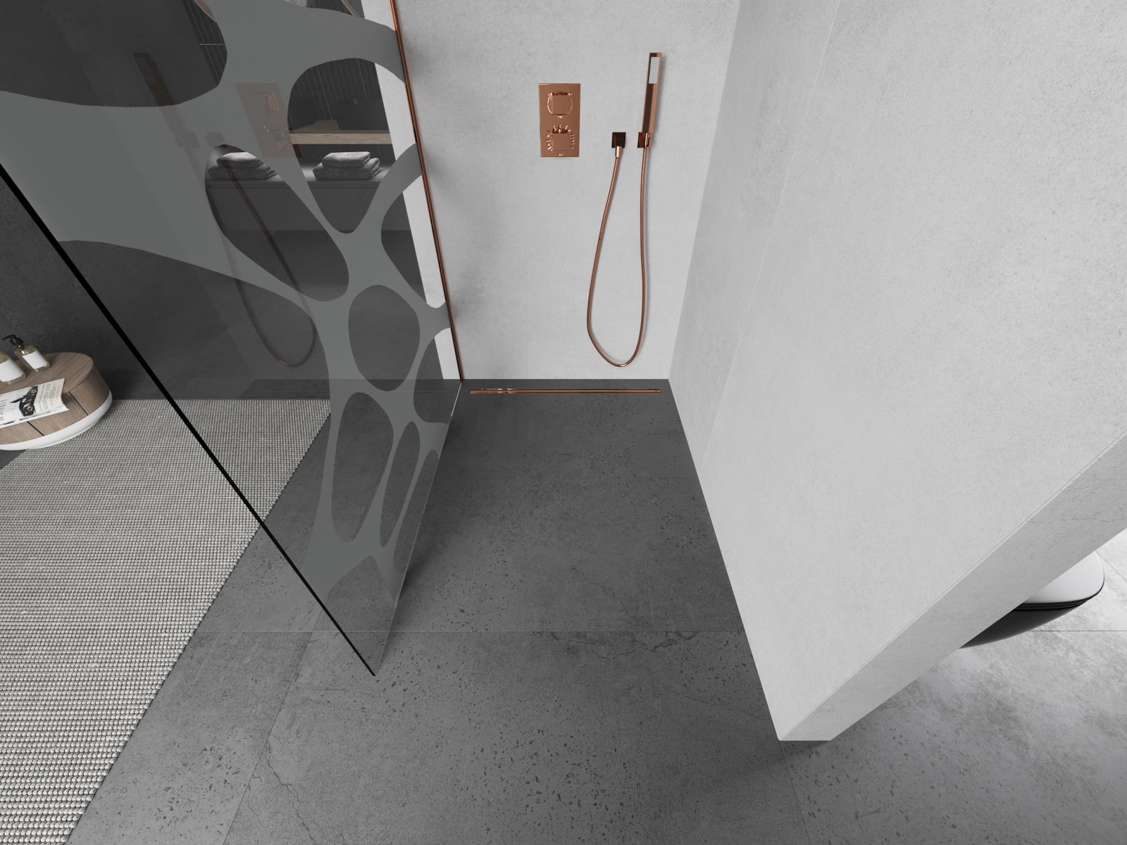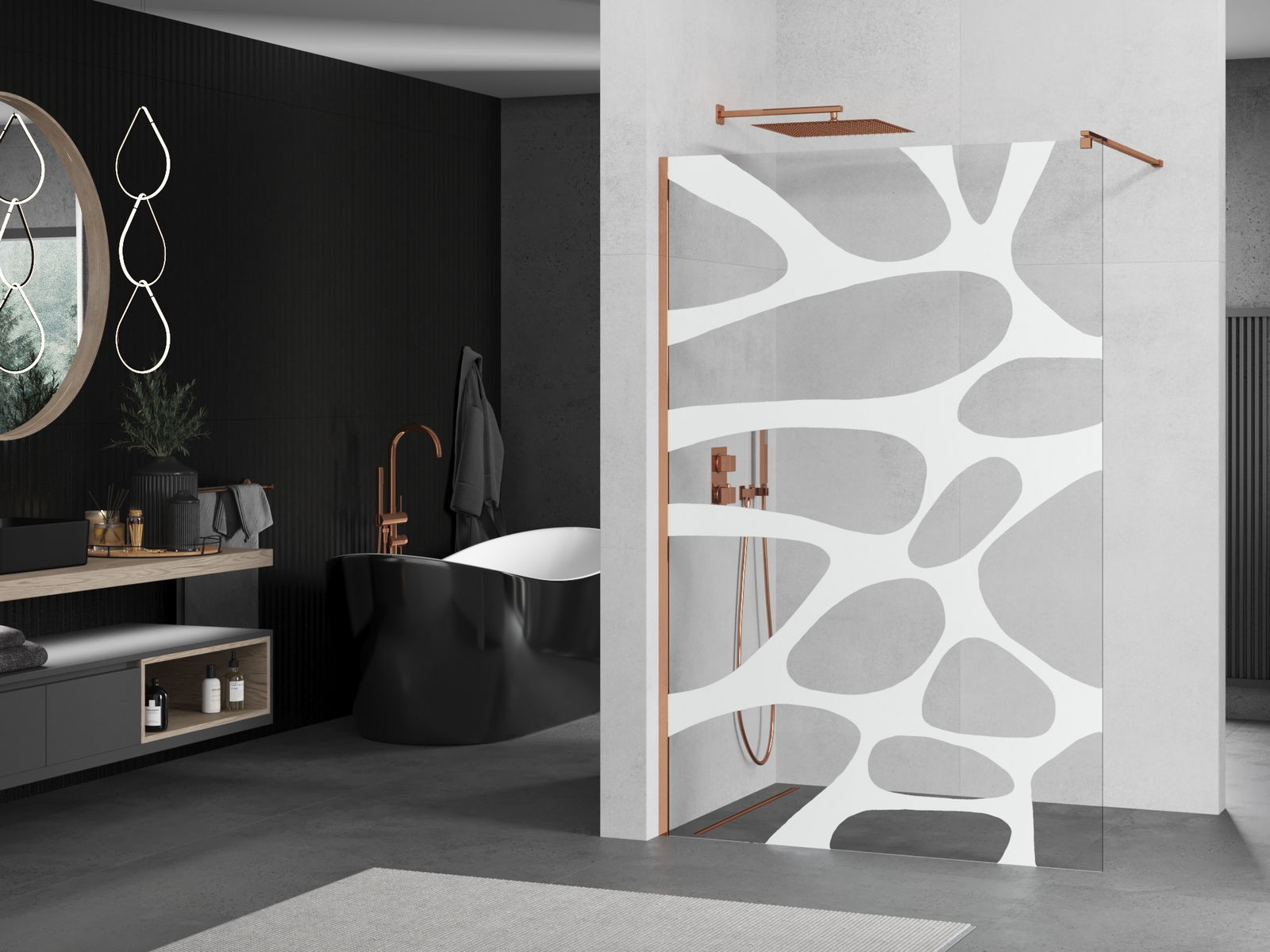 Mexen Kioto perete de duș Walk-in 110 x 200 cm, val alb 8 mm, aur roz - 800-110-101-60-97