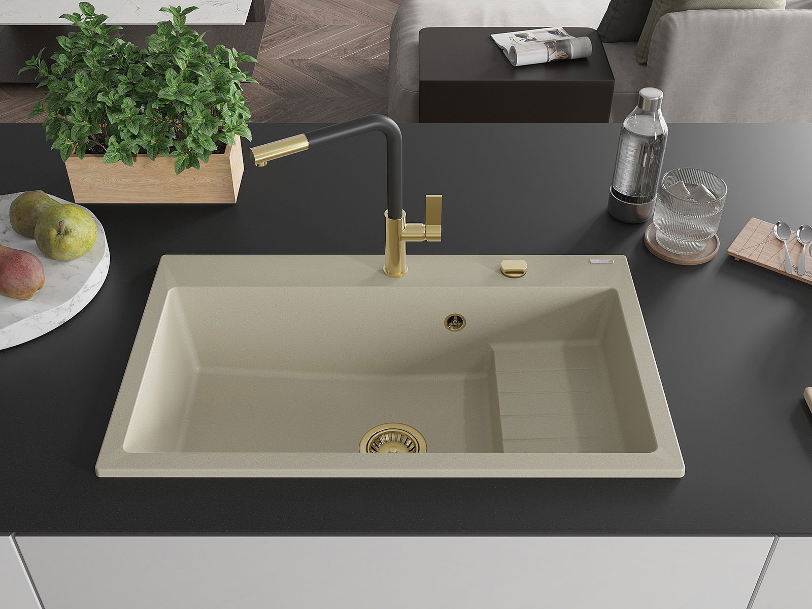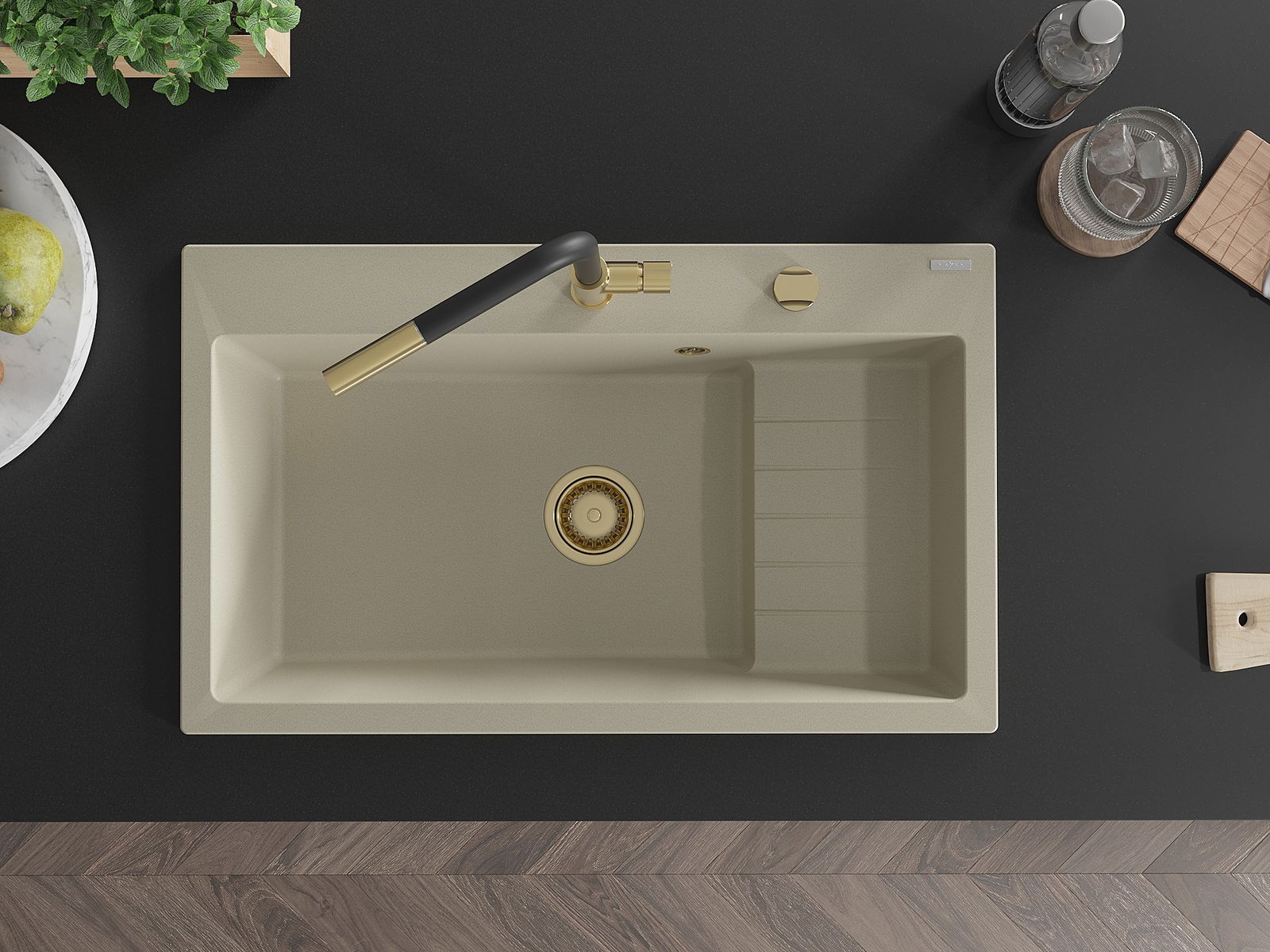Suprafața chiuvetei este rezistentă la pete și decolorare, ceea ce o face ușor de întreținut și își păstrează culoarea pentru o perioadă lungă de utilizare. Un complet estetic și practic pentru orice bucătărie.