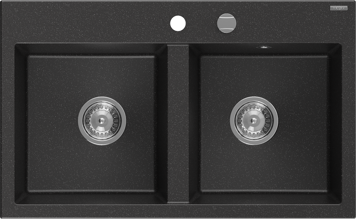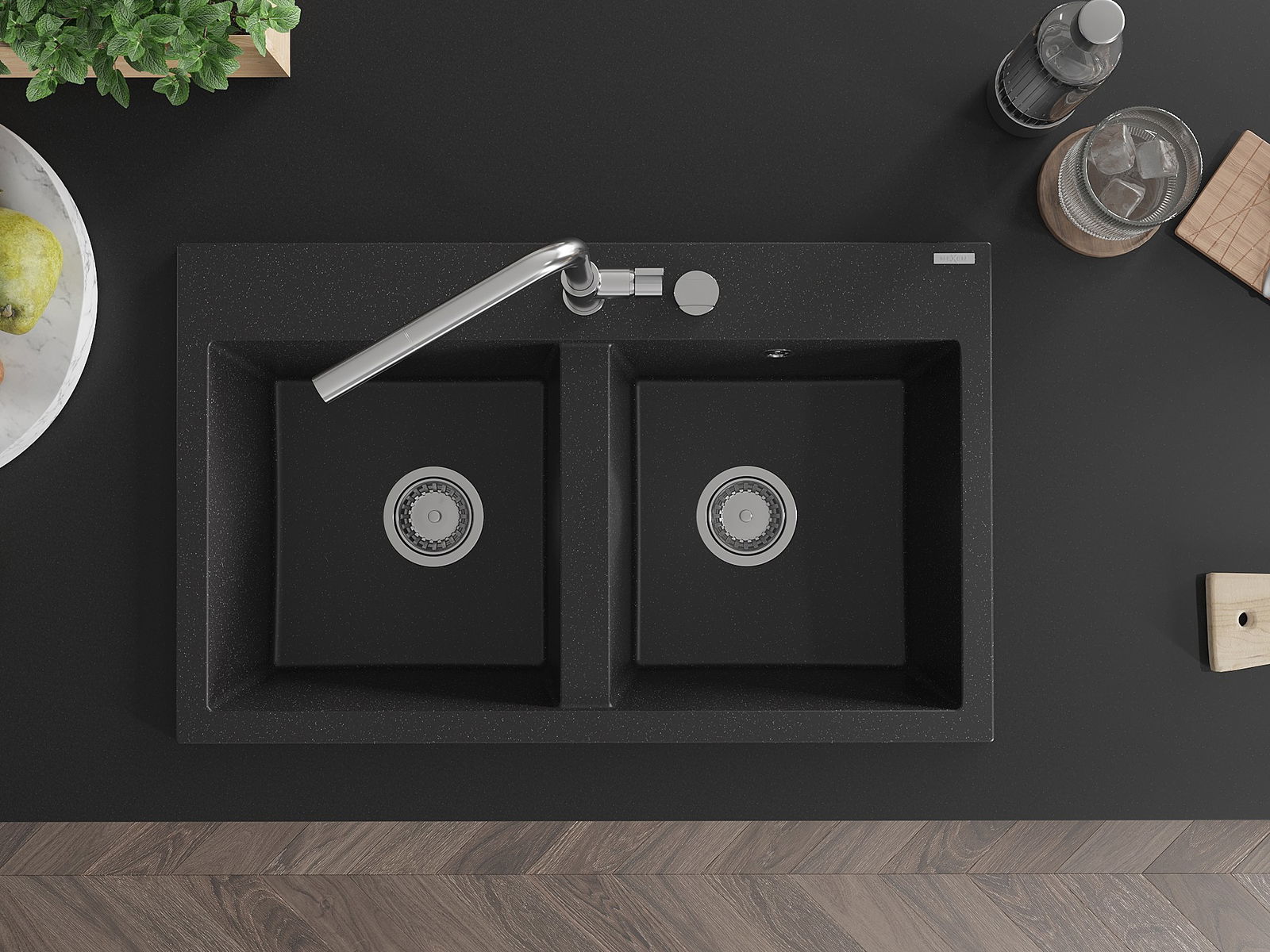 Mexen Hektor chiuvetă de granit cu 2 compartimente 800 x 480 mm, negru/argintiu metalic, sifon crom - 6521802000-73