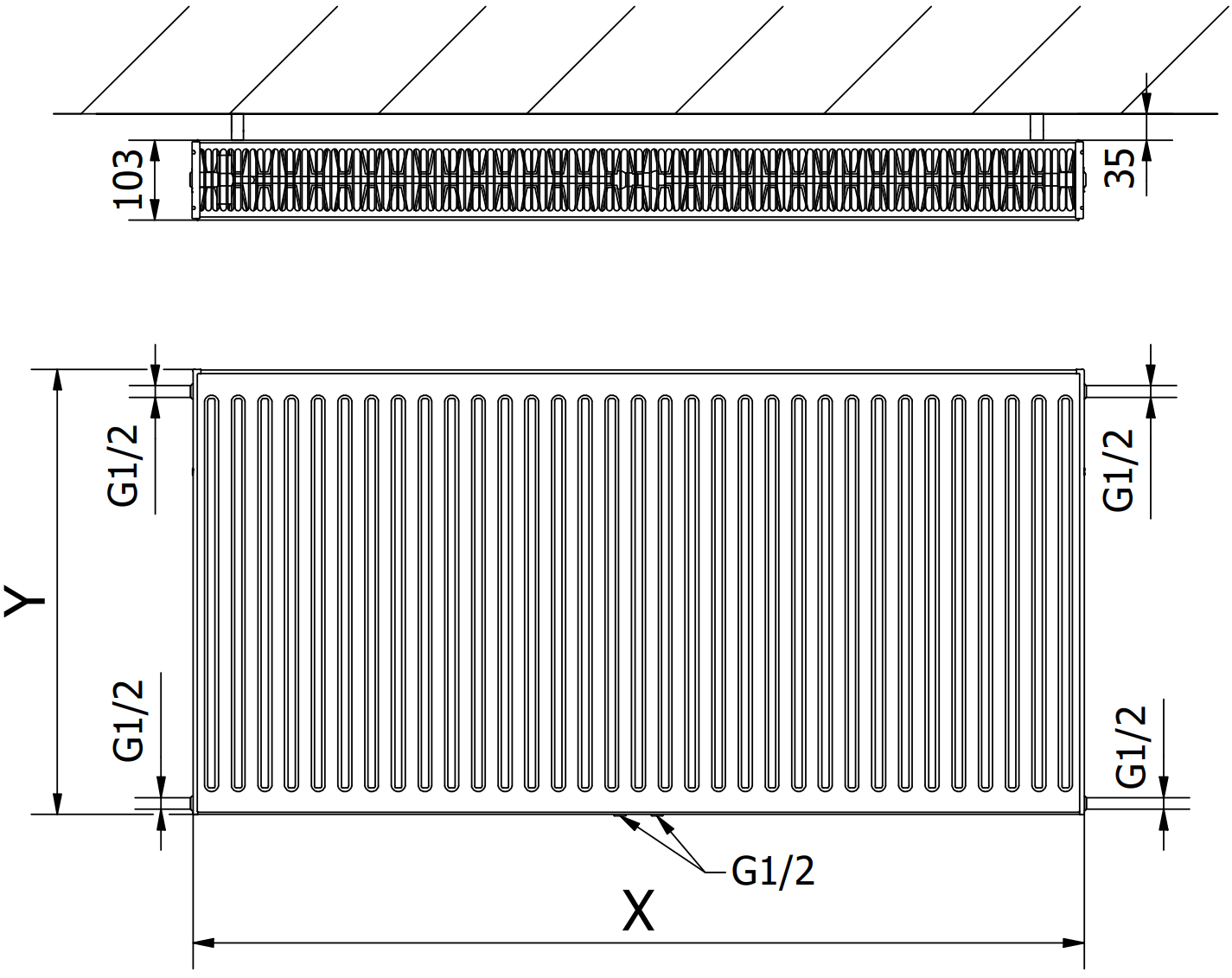 Distanța între canalele verticale de apă: 33,3 mm