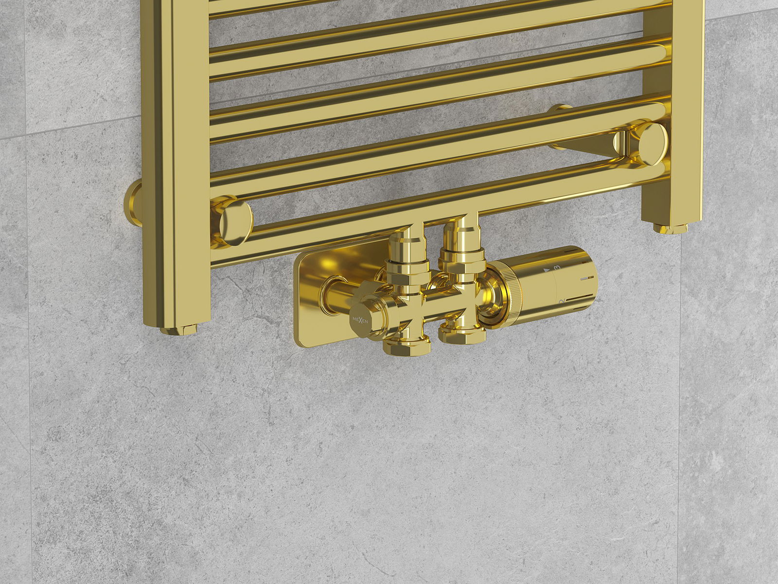 Setul cu rozeta din oțel inoxidabil și bucșă din alamă este combinația a două materiale cu proprietăți excepționale. Oțelul inoxidabil asigură un finisaj estetic și rezistență la coroziune, în timp ce alama garantează durabilitate și rezistență la îmbinarea elementelor sistemului de încălzire.