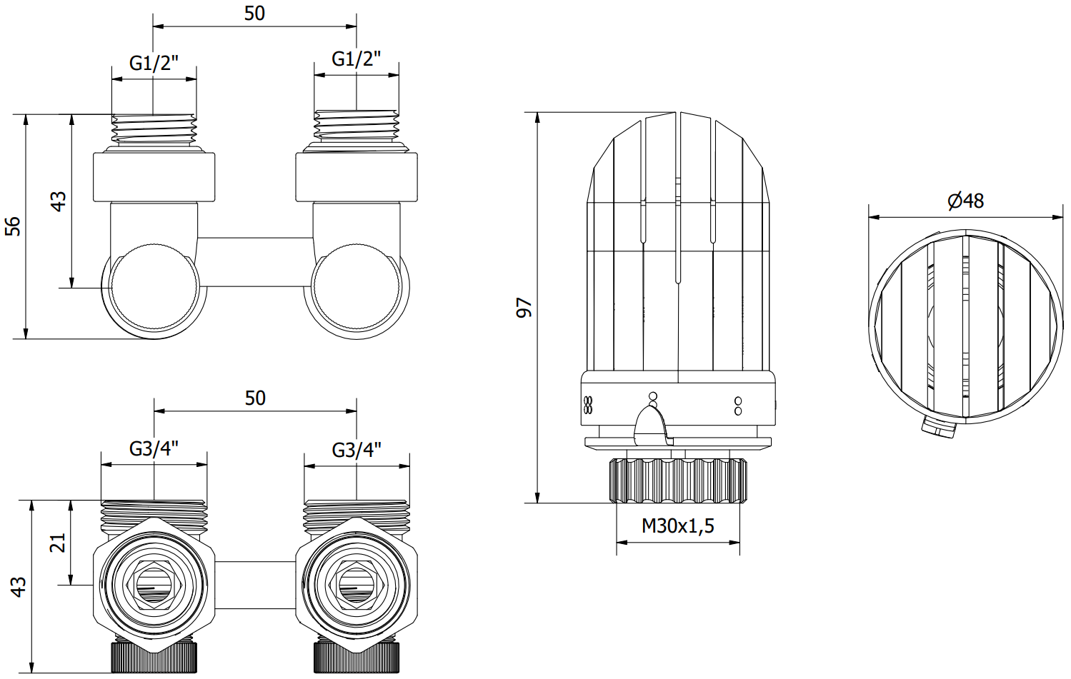 Diametrul conexiunii supapei: G 1/2" și G 3/4"