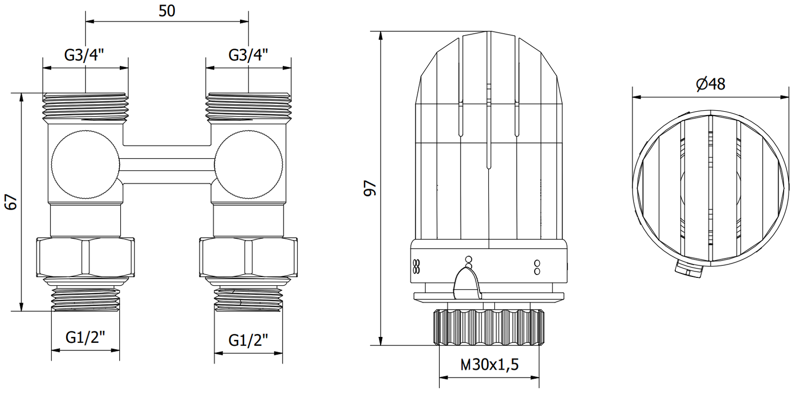 Supapă radiator alimentare și oprire