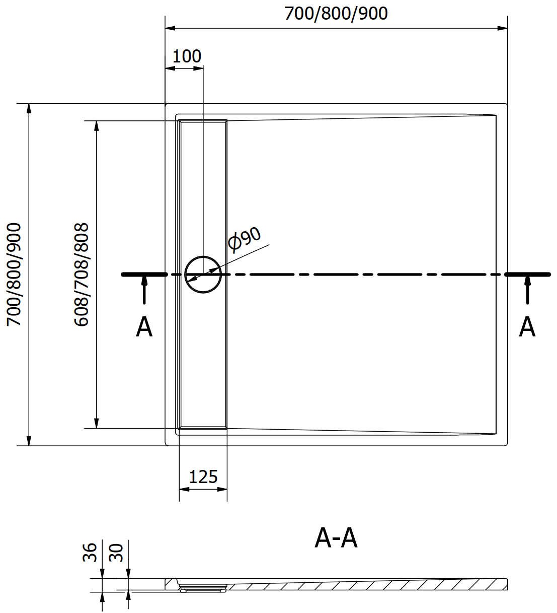 Cadă de duș a fost proiectată astfel încât apa să poată curge liber către evacuare. Asigură o drenare rapidă și eficientă a apei de pe suprafața căzii de duș, prevenind formarea bălților și inundarea băii.