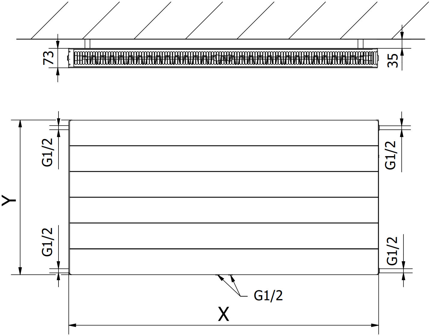 Imaginile arată radiatorul în dimensiunea 600 x 1200 mm.